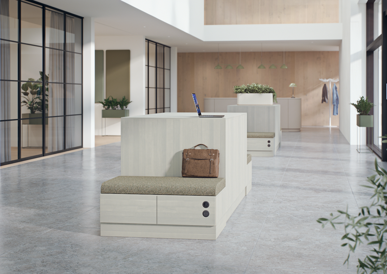 Odaklanmak için akustik oturma kabini ve beklerken telefon şarj edebileceğiniz prizli bir bank modülü de yer alır. Farklı renk ve malzeme seçenekleri sayesinde Capacity, sadece bir dolap değil; ofise düzen, konfor ve şık bir görünüm kazandıran pratik bir çözümdür.