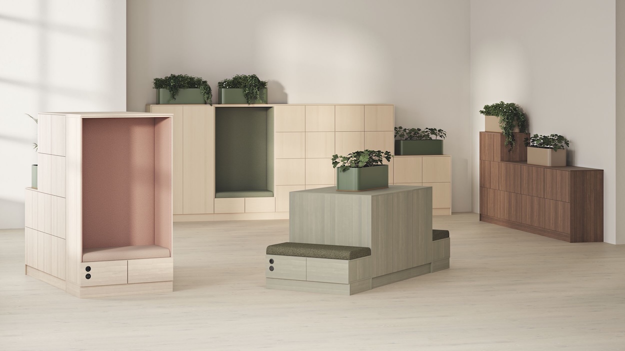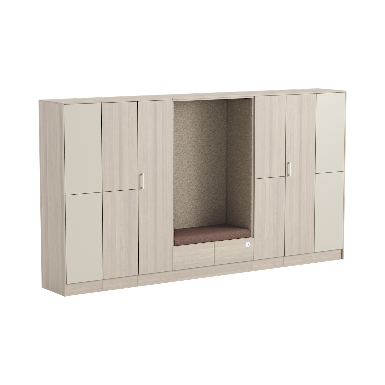 Odaklanmak için akustik oturma kabini ve beklerken telefon şarj edebileceğiniz prizli bir bank modülü de yer alır. Farklı renk ve malzeme seçenekleri sayesinde Capacity, sadece bir dolap değil; ofise düzen, konfor ve şık bir görünüm kazandıran pratik bir çözümdür.