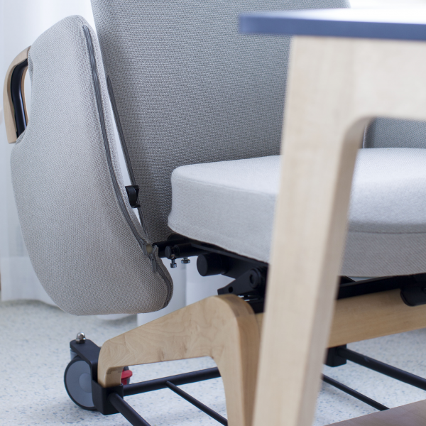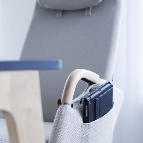 Sandalyeye takılıp çıkmayı kolaylaştıran ayarlanabilir boyun yastığı ve katlanan kolçaklar. John, diğer rahat sandalyelerimizde olmayan bir şeye sahiptir - koltuğun derinliği ayarlanabilir. John'un kol dayama yerlerinden birinin dışında bir telefon, tablet veya kitabı kolayca saklamak için pratik bir cebi de var.