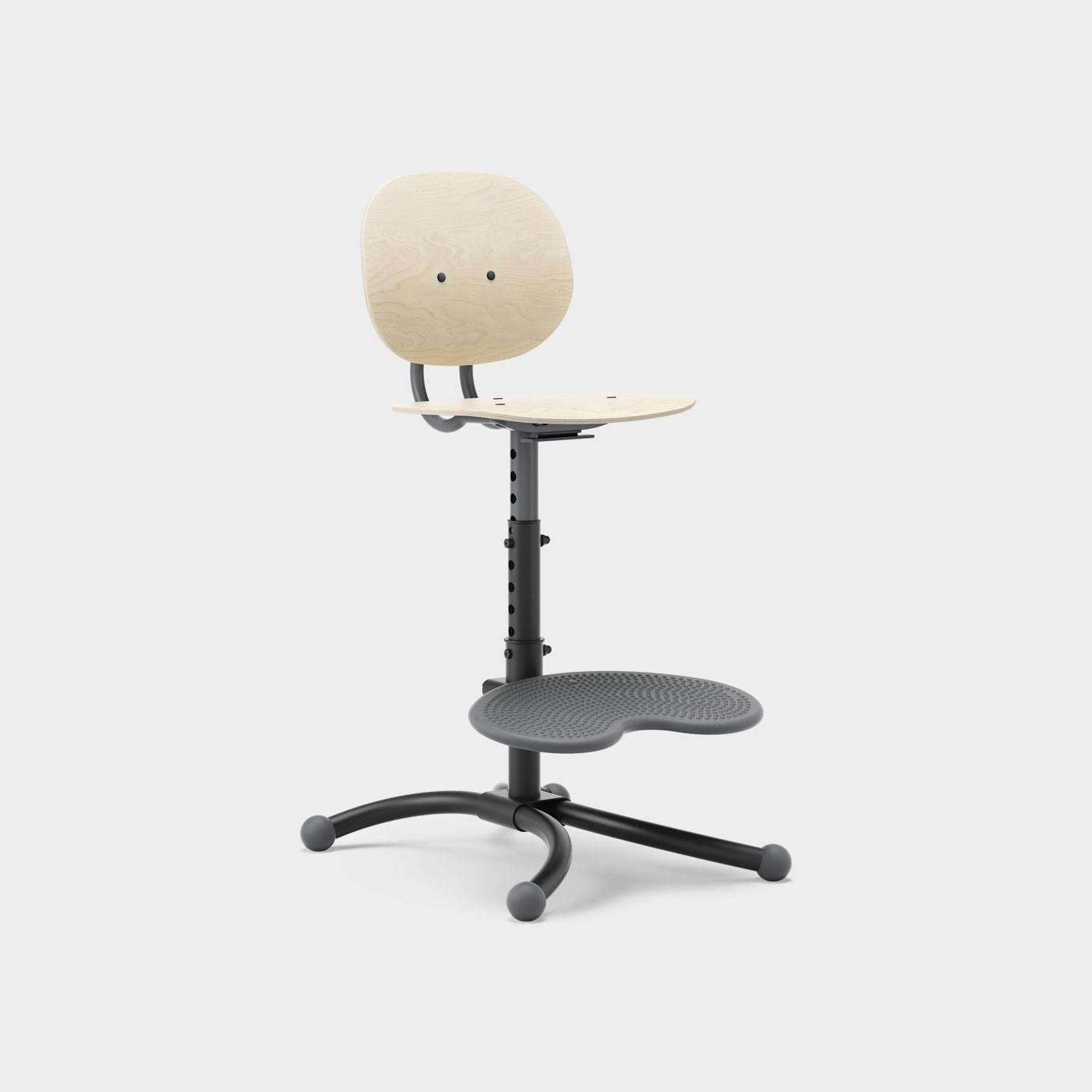 casper eğitim koltuğu, 6–13 yaş arası öğrenciler için yüksekliği ayarlanabilir ve 730–900 mm arasındaki masa yüksekliklerine uygundur.