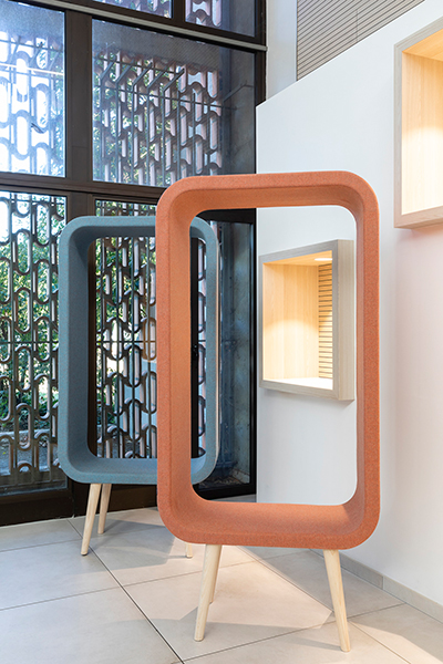 Frame, resim çerçevelerinden esinlenmiştir. Temel dikdörtgen tasarım, yaratıcı ve ilham verici bir atmosfere katkıda bulunan çok yönlülüğü ile grafik bir sandalye oluşturur. Ortada bir tabure gibi oturabilir veya içine oturulup yanlarından birini arkalık olarak kullanabilirsiniz. Normal oturma mobilyalarının aksine Frame, kullanıcıyı çevreleyen ve etrafı perdeleyen ve kendi alanı hissini yaratan her iki tarafa ve bir üst kısma sahiptir.