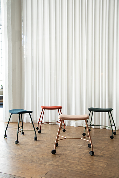 Motus taburenin şekli işlevi ile belirlenir. Hafif öne eğimli eğimli döşemeli koltuk ekstra rahatlık sağlar ve tasarımı, bir sele veya at üzerinde olduğu gibi dik durmanıza izin verir. Tabure, daha aktif ve hareketli bir oturma şekli için aralıklı fren tekerlekleriyle donatılmıştır. Çerçeve, krom veya CbM * toz kaplama olarak mevcuttur.
