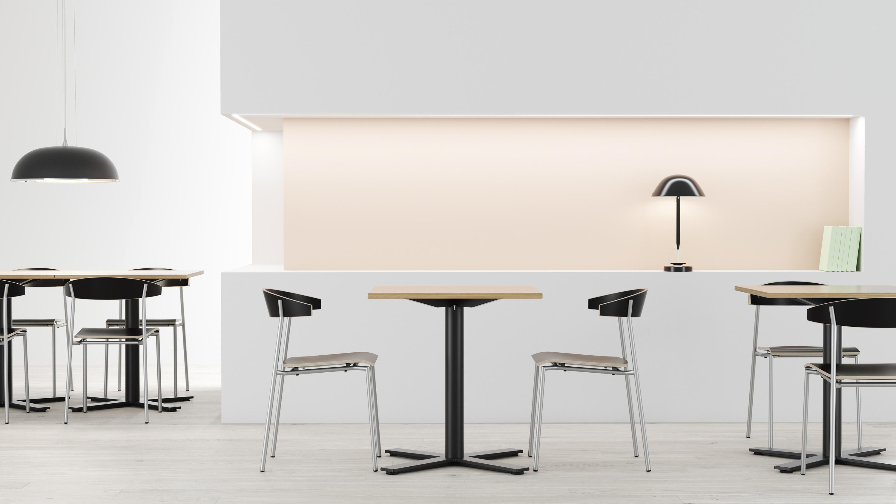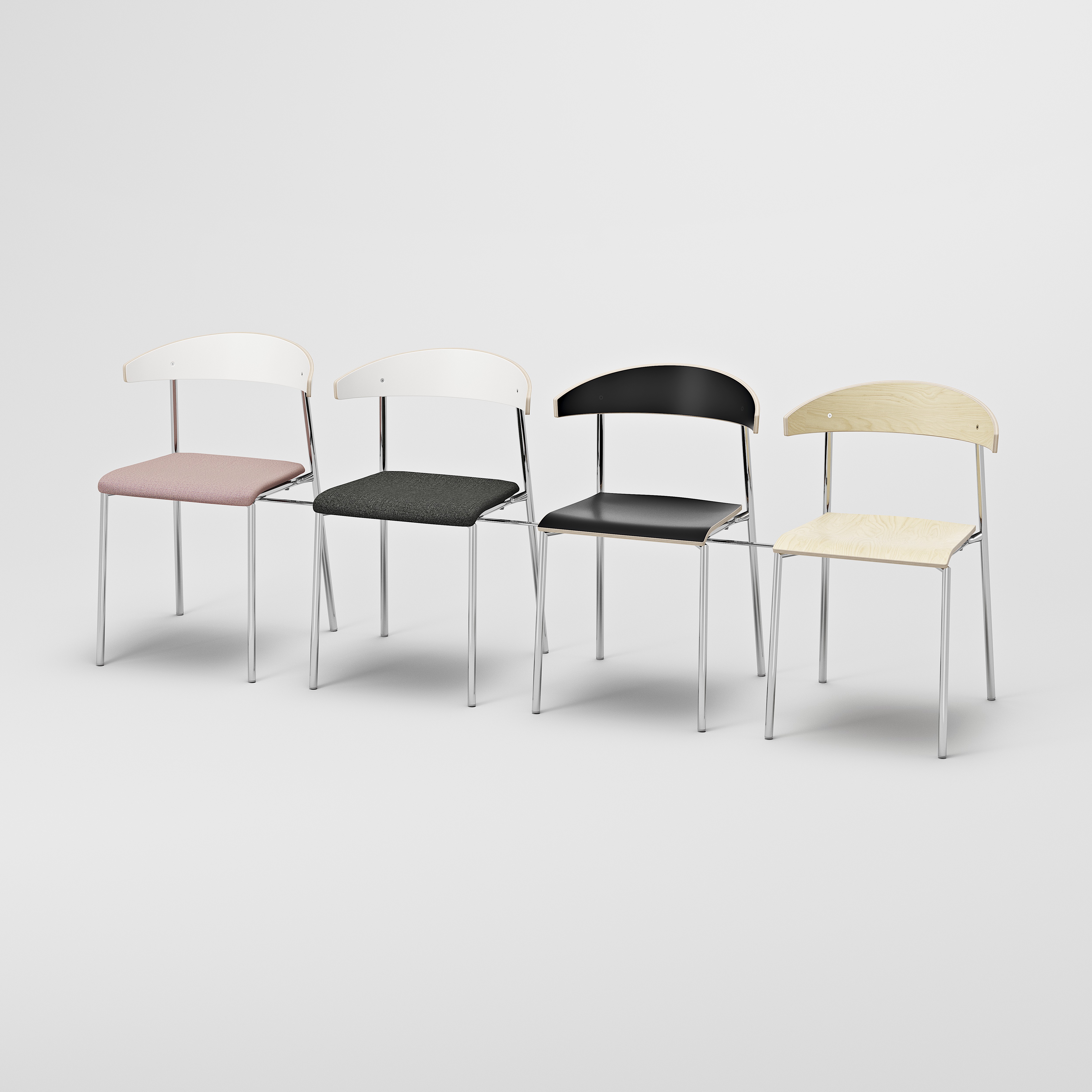 Koltukta ve sırtta kayın, huş veya meşe kaplama ve siyah veya beyaz laminat arasından seçim yapın. Çerçeve siyah, beyaz, gümüş veya krom olarak mevcuttur.