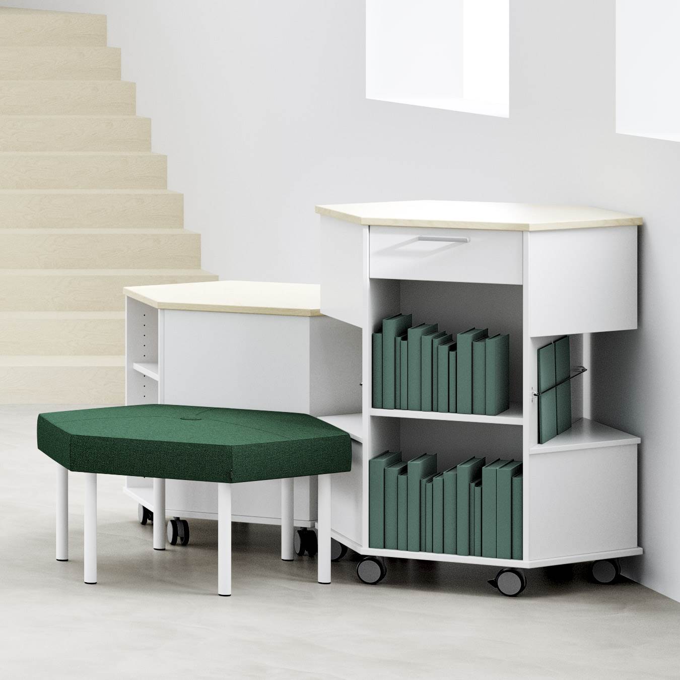 Trixagon tabure, ofislerde, okullarda ve konferans ortamlarında işbirliğini ve proje tabanlı çalışmayı desteklemek için tasarlanmıştır. Lounge ortamlarında ve diğer kamusal alanlarda da doğal bir işleve sahiptir. Taburenin altı kenarlı şekli, birkaçını çeşitli oturma takımlarına ve Trixagon ailesi saklama çözümleriyle kombinasyon halinde yerleştirmenize olanak tanır. Tabure sabit ve hafiftir, bu da hareket etmeyi kolaylaştırır. Sezgisel şekli, kullanıcıların yumuşak oturma yerini gerektiği gibi yeniden düzenleme olasılıklarını görmelerini sağlar.