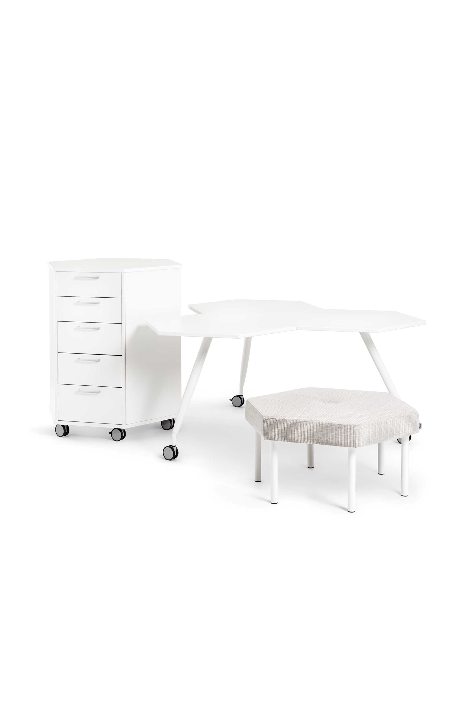 Trixagon depolama ünitesi, bir yapboz gibi birbirine uyan akıllı altıgen biçimli mobilya ürün ailemizin bir parçasıdır. Depolama ünitesi, kolayca yeniden düzenlenebilmesi için tekerleklerle donatılmıştır ve bu da onu tüm aktif ofis ve okul ortamlarında mükemmel bir çözüm haline getirir.