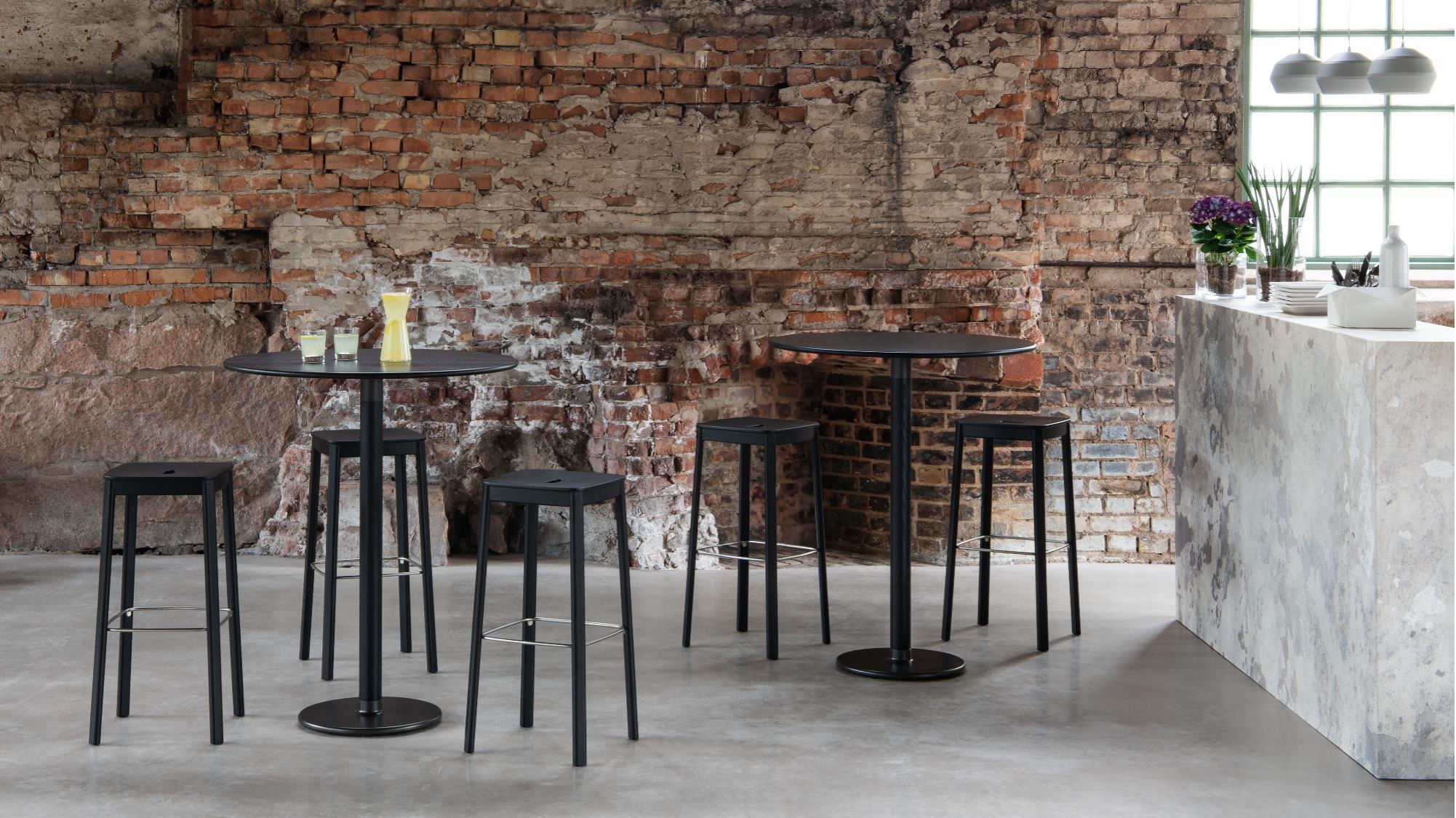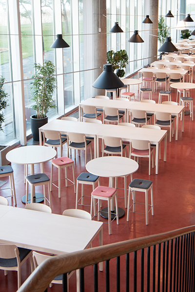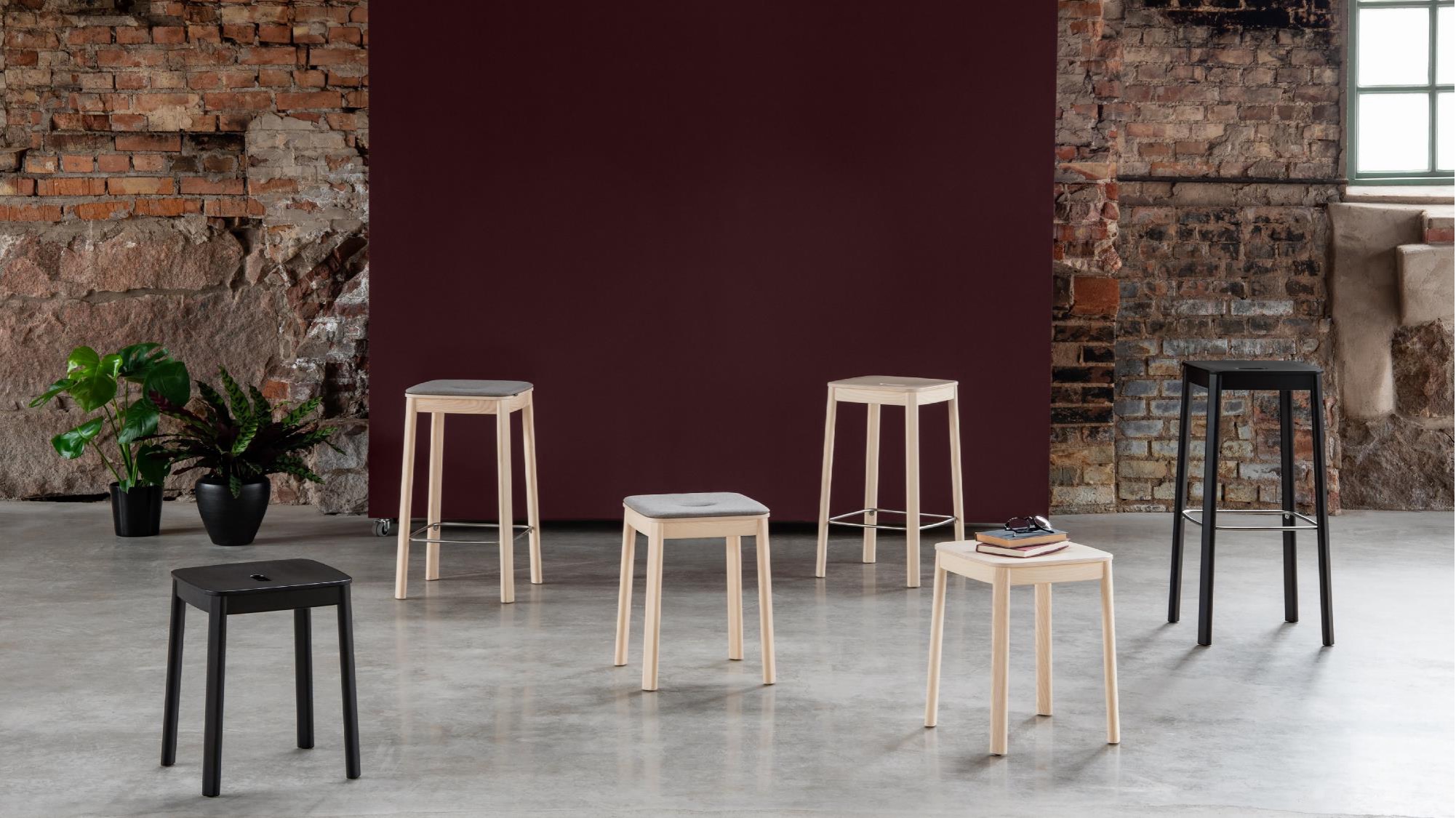 Seri, minimum karbon ayak izi oluşturduğu anlamına gelen FSC® etiketli ahşaptan yapılmıştır. Tezgahın çerçevesi masif ahşap, oturma yeri ise kalıplanmış kaplamadır. Ahşabın sıcak hissi ve bacakların oval şekli, güçlü tasarımına katkıda bulunur. Bank, beyaz pigmentli veya siyah, dışbudak renginde, döşemesiz veya döşemeli oturma yeri ile mevcuttur. Bankı domino masa ve sandalye ile birlikte veya tek başına da kullanabilirsiniz.