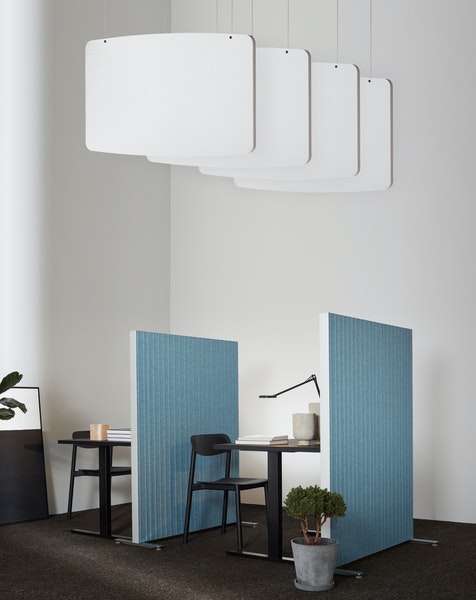 Yüksek tavanlı odalarda sesi etkili bir şekilde azaltmak için bölmeleri kullanın! Ses emici ham çekirdek, geri dönüştürülmüş PET'ten elde edilen polyesterden yapılmıştır. Temel Bölmeler, "Soundfelt" olarak bilinen hammaddede homojen olarak mevcuttur. Soundfelt ayrıca Soundfelt çekirdeğinin kenarlarda görülebildiği bir kumaşla da kaplanabilir.