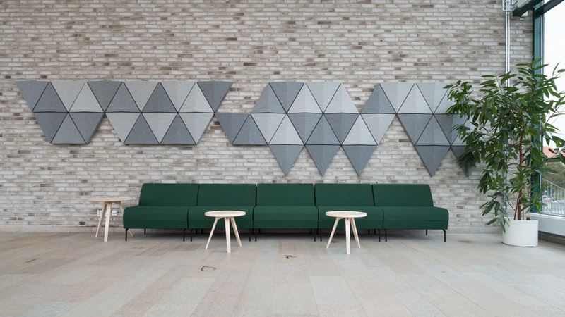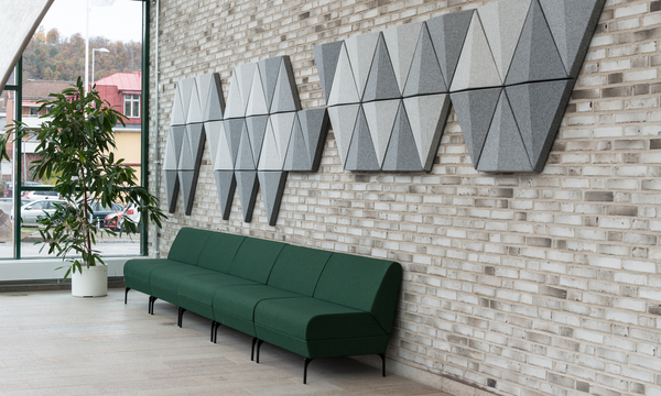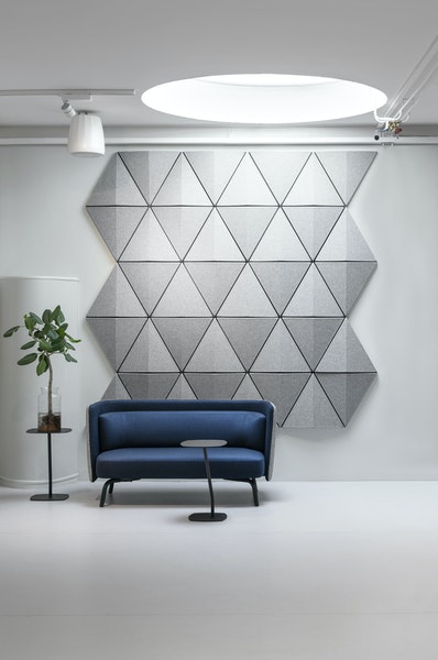 Burada üçgen form, ses dalgalarını yayarak ve böylelikle yankıları önleyerek daha iyi bir ses ortamına katkıda bulunurken görsel enerji sağlar. Üçgen Bits Wall panelleri, hem yatay hem de dikey olarak monte edilebilir ve bunları istediğiniz herhangi bir desende birleştirmenize olanak tanır.