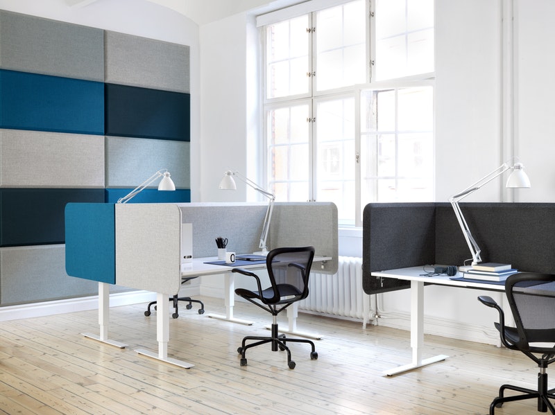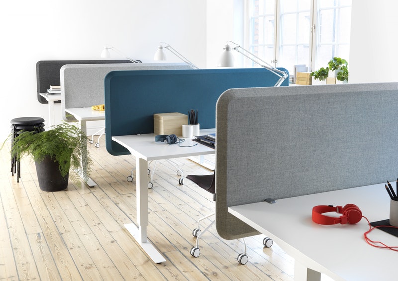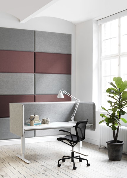 Domo table zarif bir şekilde eğimli kenarları çekici bir ışık ve gölge etkileşimi oluşturur. Masa paneli ses emici malzeme ile doldurulmuş ve kumaşla döşenmiştir.