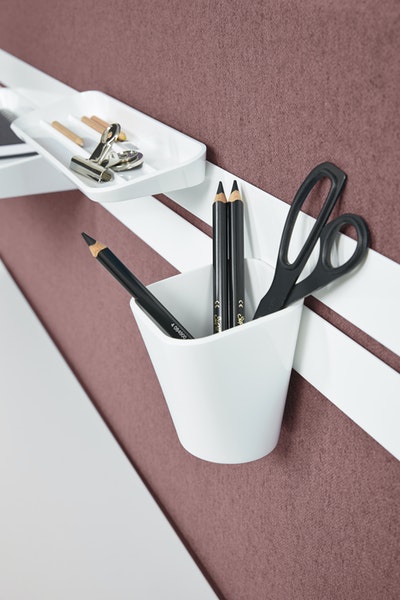 Tümü Domo by Borselius için özel olarak tasarlanmış çeşitli boyutlarda kalemlik ve raf aksesuarlarının takılması için ekranın cephesine manyetik bir dirsek eklenebilir.