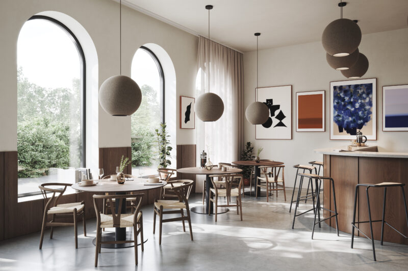 İşlevselliği, yenilikçi tasarımıyla ve olağanüstü akustiğe sahip küre şeklinde bir lamba olan moon, en yüksek düzeyde direkt aydınlatma kalitesi sağlar. Şekli ve ölçeği, hem yüksek hem de düşük frekanslı ortam gürültüsünü etkili bir şekilde emmesini sağlar.