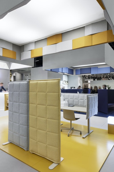 Stitch, ızgara desenli dikişli kalın, yastıklı kumaşla kaplanmış ve ince yapılmış dişbudak ağacından ayaklar üzerine monte edilmiş yumuşak ve rahat görünümlü, ses emici bir paneldir. Kanepeler, minderler ve kuş tüyü ceketlerden ilham alan Stefan Borselius’un Stitch tasarımındaki amacı, bir insan sıcaklığı unsuru ekleyerek genellikle sert ve köşeli kamusal alanları daha sıcak hale getirmekti. Aynı nedenle, Stitch ev ortamlarına da eşit derecede uygundur.
