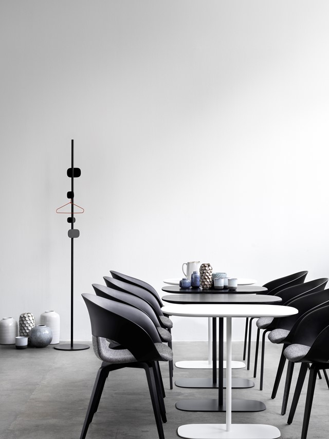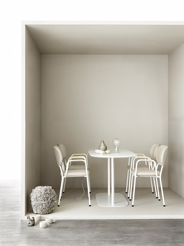 Tasarımcılarının yorumuyla; "Matsumoto'da (Tokyo'nun birkaç saat kuzeybatısındaki orta büyüklükte bir şehir), kafesi olan bir amiral gemisi mağazası tasarladık. Kenardan kenara dizildiğinde, açıkça tanımlanmış koltuk pozisyonlarıyla bir tür uzun kafe masası oluşturan iki kişilik bir masa geliştirildi. Basit ama kolayca tanınabilir bir geometri. Mağazanın iç mekanı 2015 Alman Tasarım Ödülü'nü kazandı. Matsumoto, Japon şehrinde, bir çocuk kitapçısı ile birlikte bir seramik galerisindeki bir sehpa ile aynı adı taşıyan hayata başladı. Şimdi bir kahve veya yan sehpanın bu yeni varyasyonlarında taban plakasının ve masa tablasının yumuşak, yuvarlak şekillerini birbirine yaklaştırdık. Şekiller arasındaki yan yana yerleşimi daha da net hale getiriyor. "