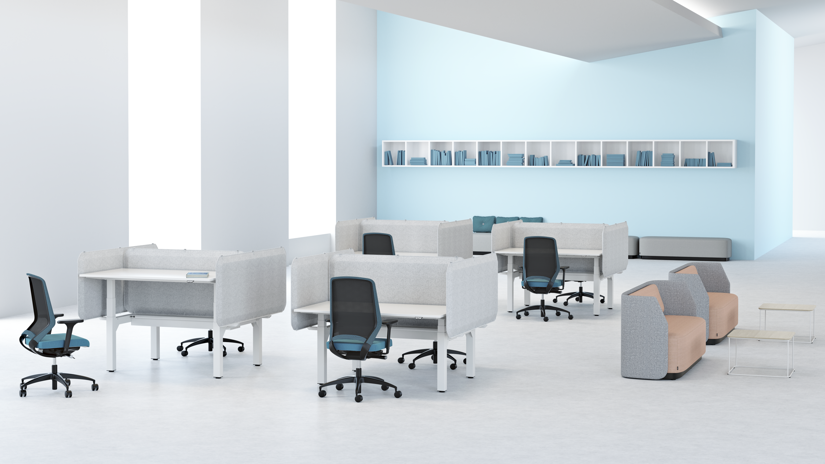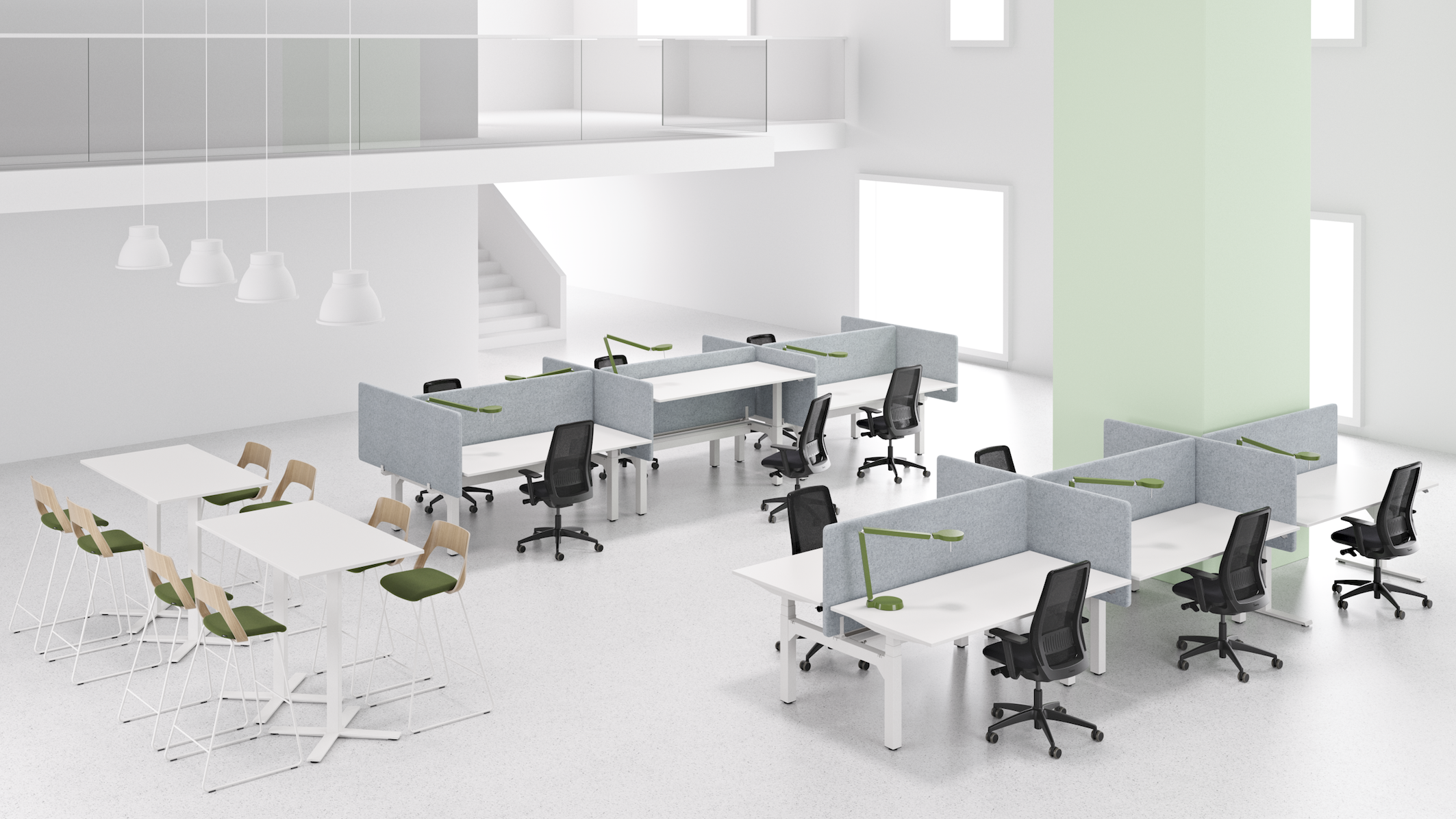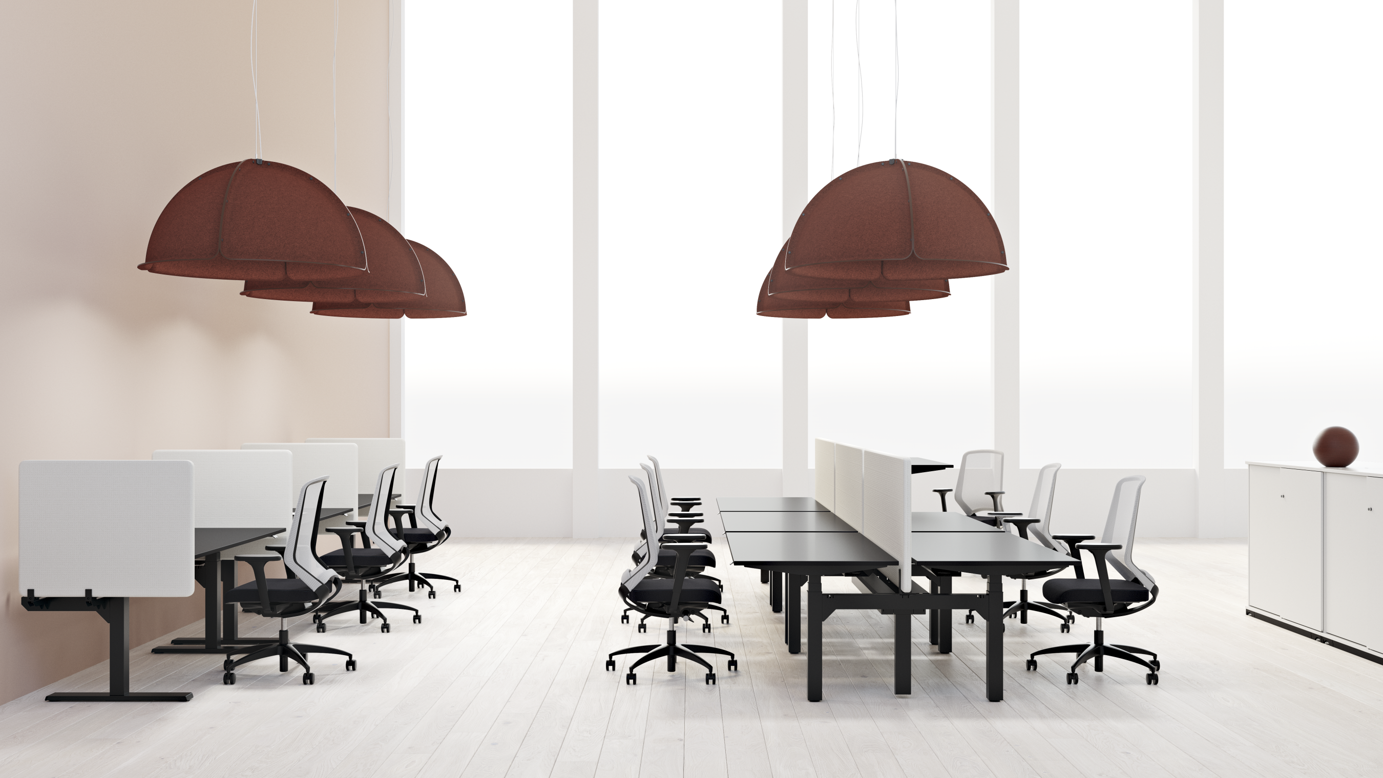 Prim veya Vibe gibi masaüstü panellleri dengeli bir ses seviyesi ve bireysel alanlar için her çalışma yüzeyinin önüne ve ayrıca çalışma alanları arasına yerleştirilebilir.