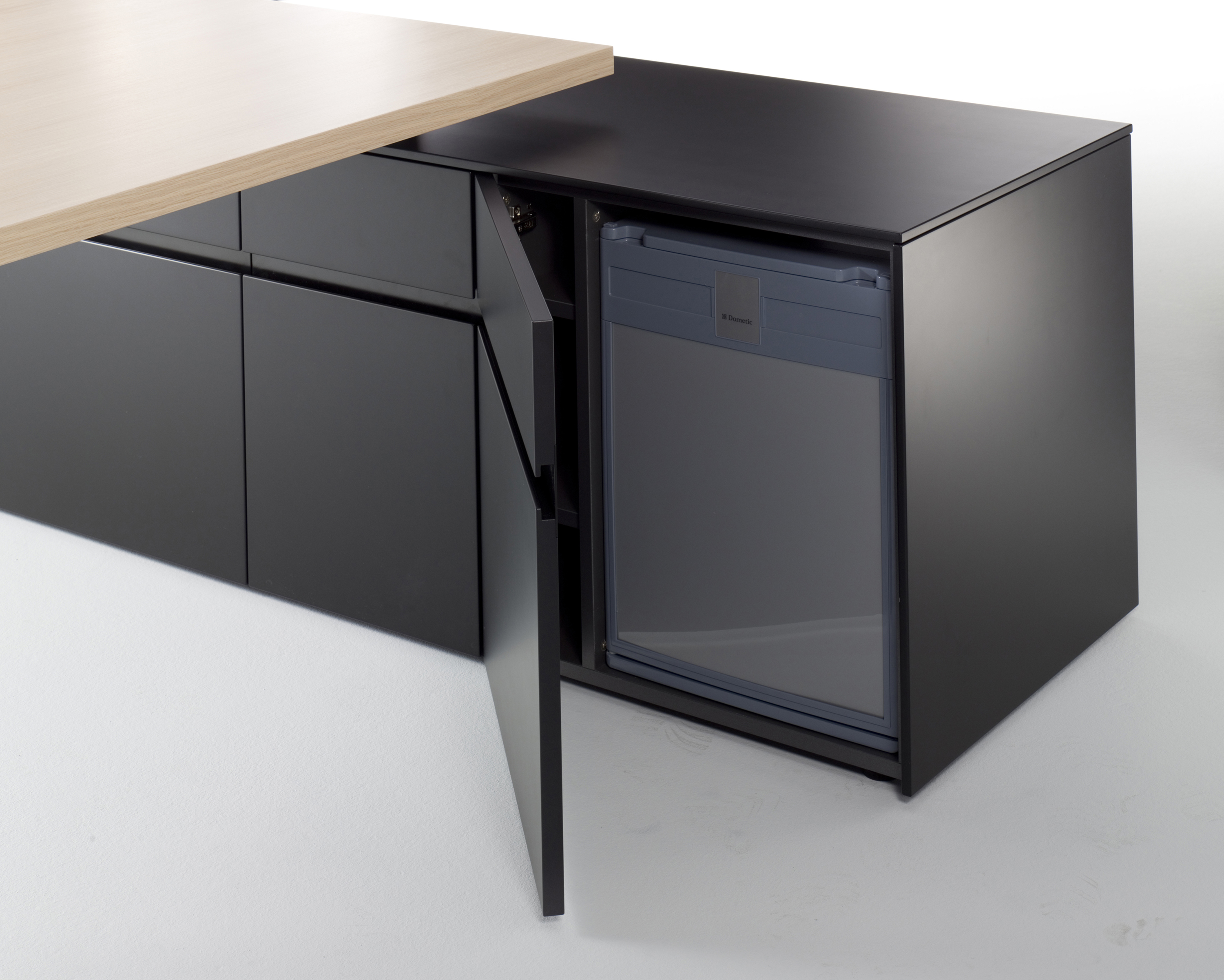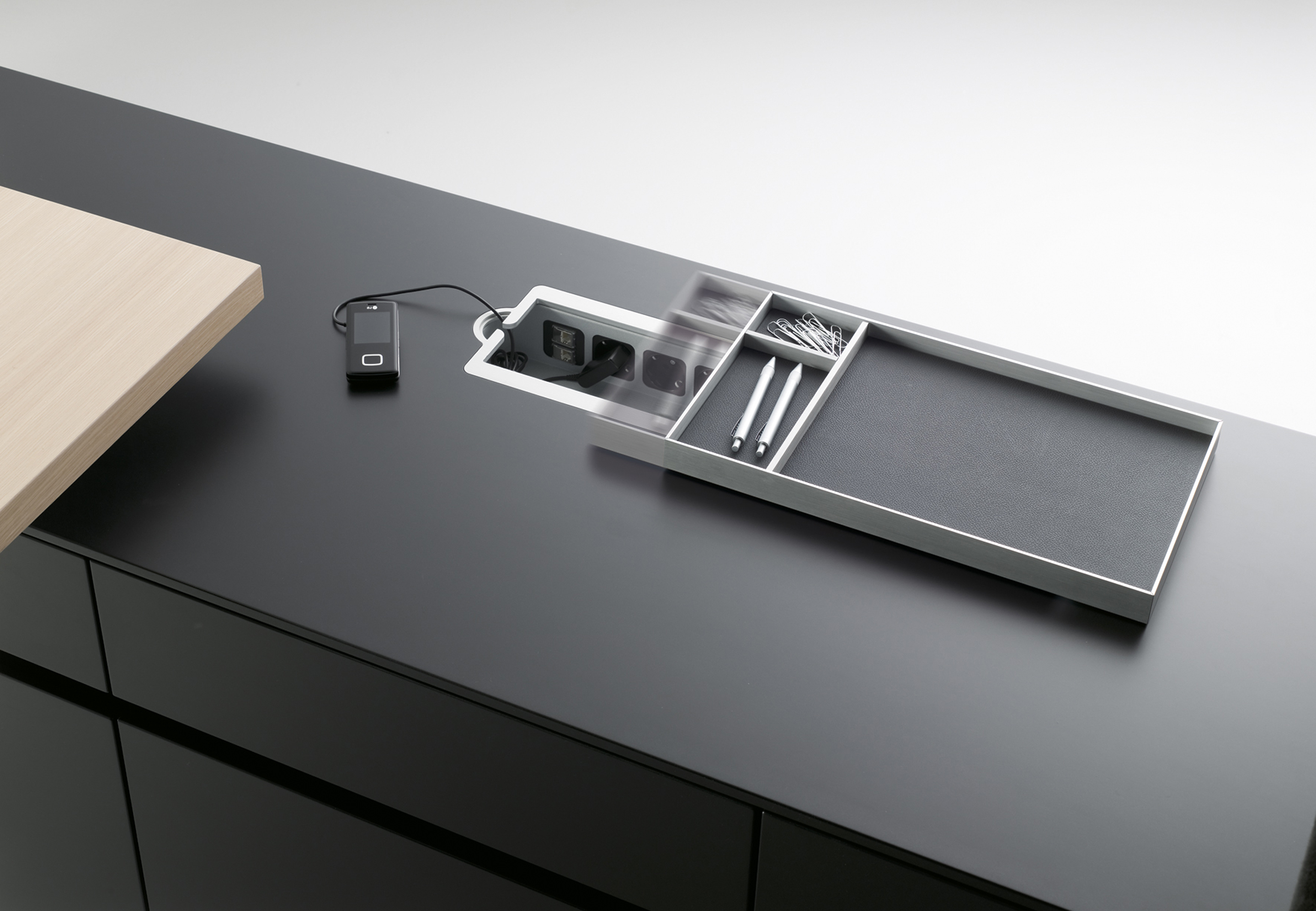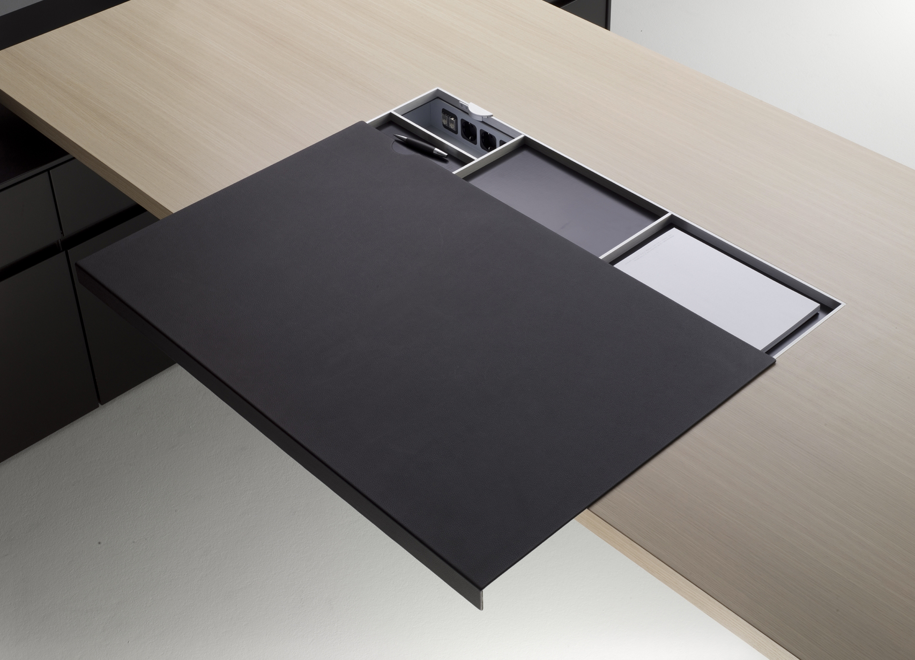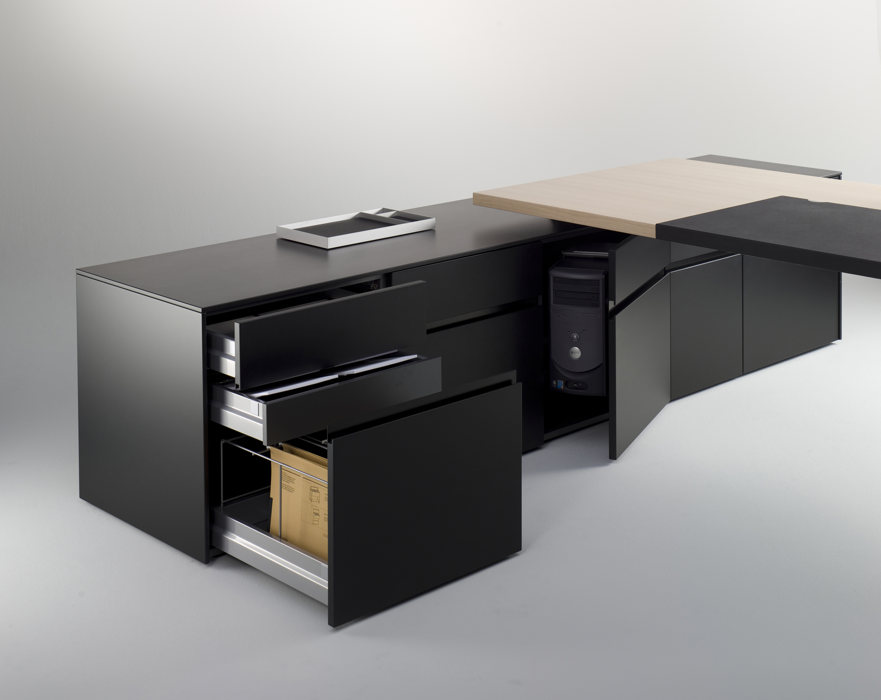 Çevremiz düşünme ve hareket etme şeklimizi etkiler. Modülerlik temel tasarım prensibidir ve çok yönlü çalışma alanı sistemi bunu mükemmele ulaştırır. Konteynerler, istenildiği gibi bir arada gruplandırılarak, depolama için pratik araç panoları oluşturur ve modern iletişim teknolojisindeki en son gelişmeleri düzgün bir şekilde entegre eder. Çarpıcı alüminyum çerçeveler, çeşitli uzunluklarda cam veya ince kaplamalı masaları destekler. Diğer seçenekler arasında yuvarlak ve dikdörtgen konferans masalarının yanı sıra elektrikle çalışan yüksekliği ayarlanabilir masa tablaları bulunur.