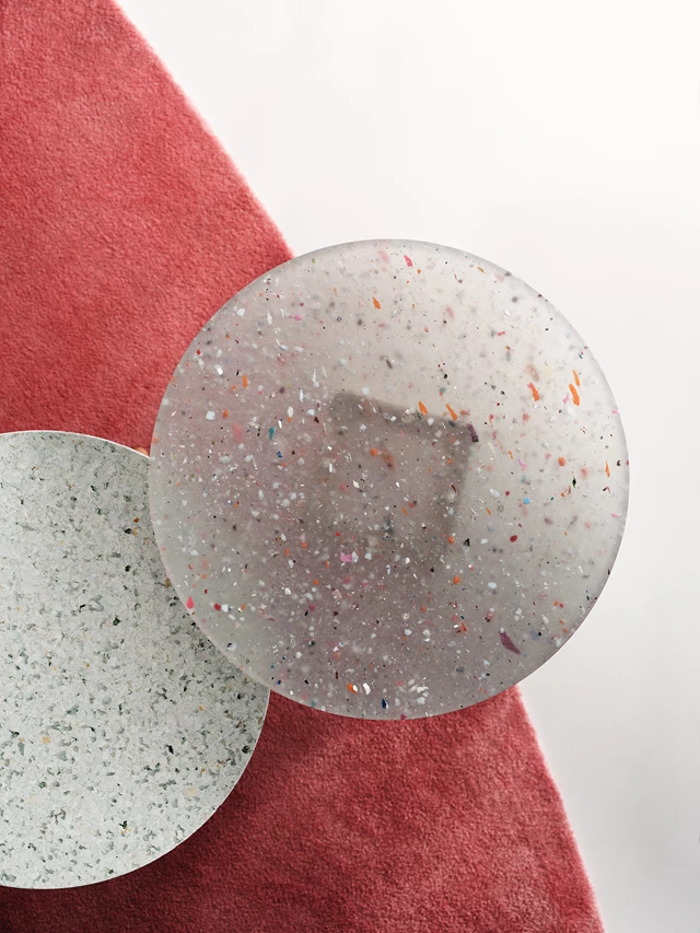 Tinnef Yidiş dilinde çöp anlamına gelse de çöpün tam tersidir. İnsanlığın aşırı plastik kullanımına bir yanıt olarak CVDLAB'dan Charlotte von der Lancken tarafından tasarlandı. Göz alıcı masa üstü serisi (Frozy sprinkles, Çayır yeşili, Beyaz mermer ve Siyah kömür) şişeler, paketler, kaplar ve aletler gibi %100 geri dönüştürülmüş plastik atıklardan yapılmıştır ve her masayı türünün tek örneği haline getirir. Tinnef her zaman büyüleyici renk ve desenlerin patlaması olacak, mekanınızı görsel harikalardan oluşan bir kaleydoskopa dönüştürecek; sürekli bir metamorfoz, muhteşem bir parmak izi ve bilinçli bir ayak izi.