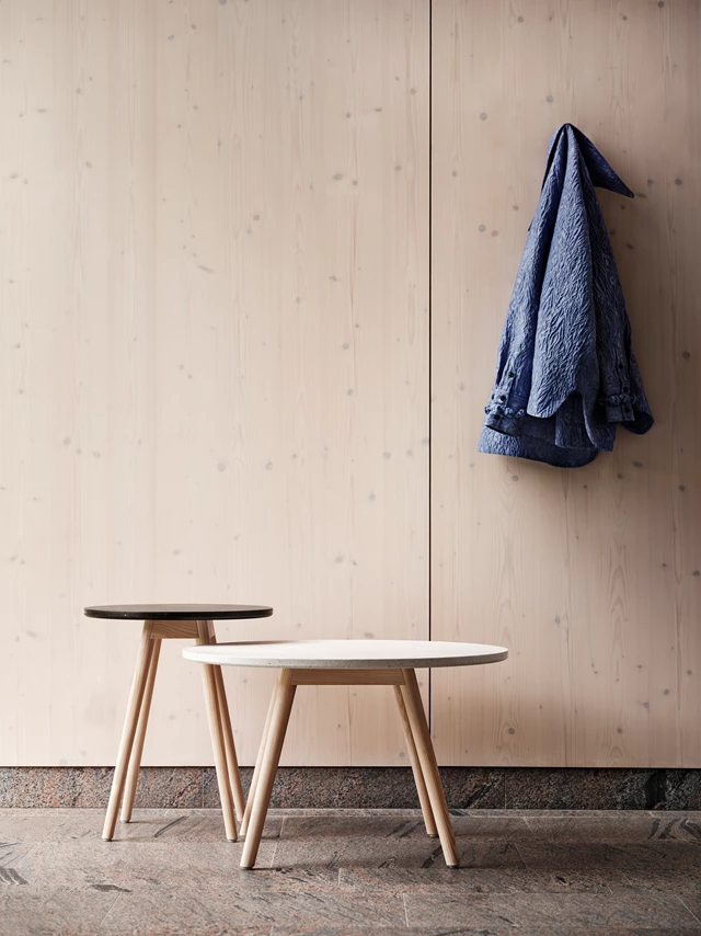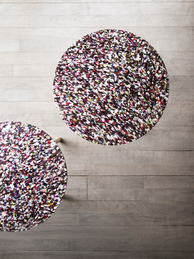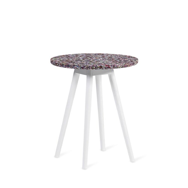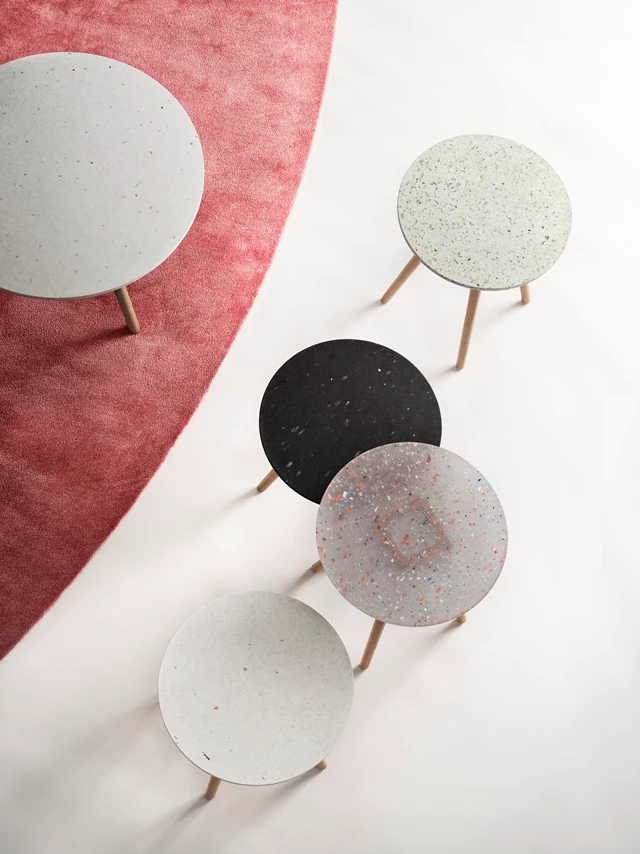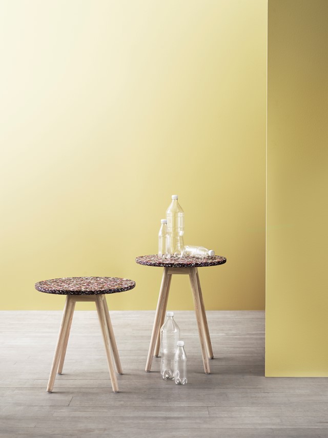 Geri dönüşüm tasarım haline geldiğinde ve plastik atığa Tinnef masası şeklinde yeni bir yaşam süresi verildiğinde tarih damgasını vuruyor. Orijinal renklerinin patlamasıyla buluşan yuvarlak şekillerle herhangi bir odada kendini ifade eden bir masadır. Masa tablası, iki farklı yükseklikte % 100 geri dönüştürülmüş plastikten yapılmıştır. Yeni bir görünümde plastik şişelerle karakterize edilen bir desenle, her masa çevresel yenilikte benzersiz bir deneyimdir. Hikayesini geleceğe dönük olarak anlatmaya istekli.