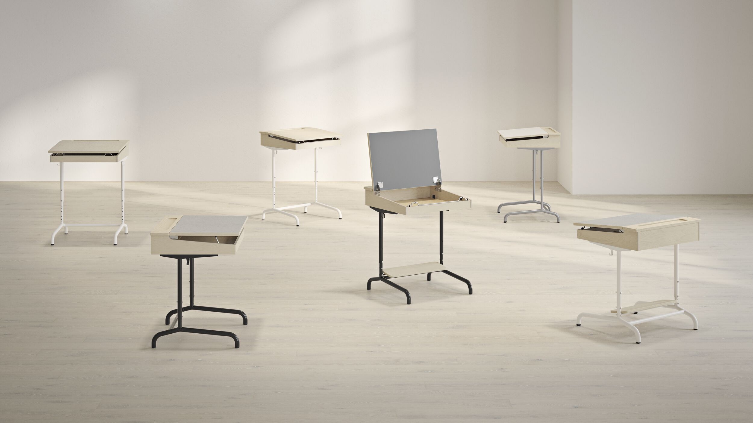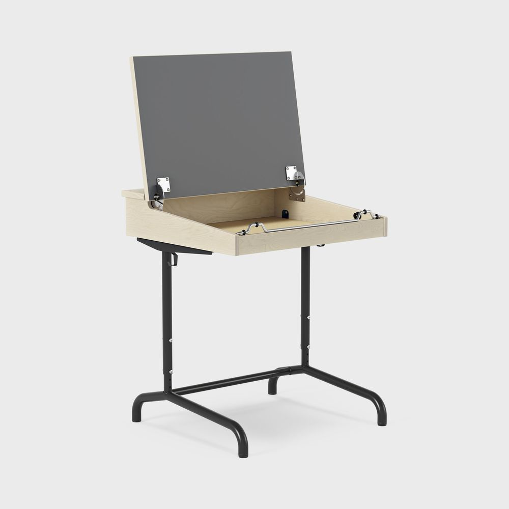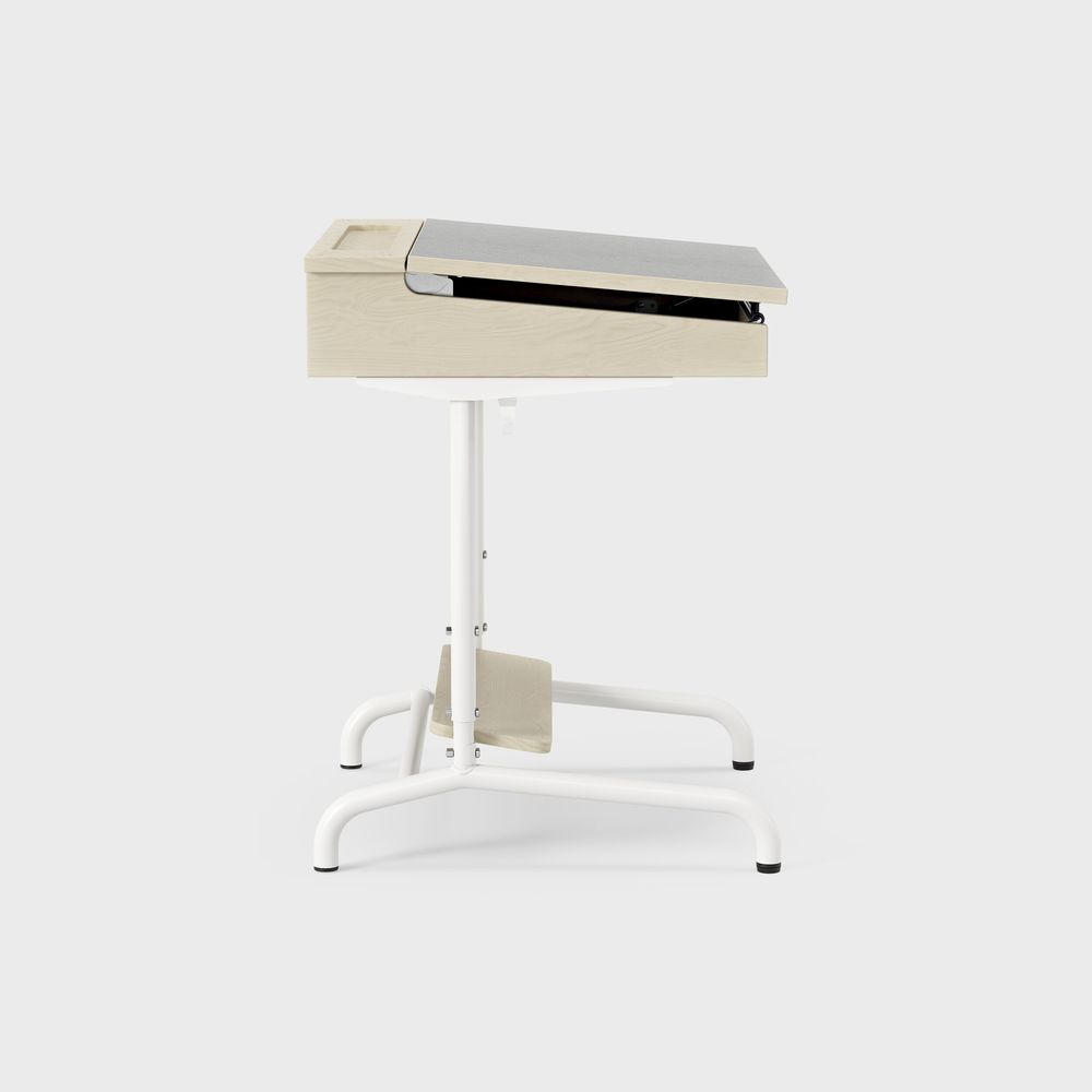 Çalışma pozisyonunu değiştirmek için üst kısım iki konuma yerleştirilebilir. Junior, farklı yaşlardaki öğrenciler için derslik sırası ve depolama alanı olarak kullanılabilir ve masa yüksekliğinin bireysel ihtiyaçlara göre özelleştirilebilmesi nedeniyle ergonomik açıdan iyi bir seçimdir. Çekmece geniş saklama alanı sunar ve ön tarafta işlevsel bir kalem tablası bulunur. Masa, çanta ve benzerlerinin kolayca asılması için iki kancayla birlikte gelir.