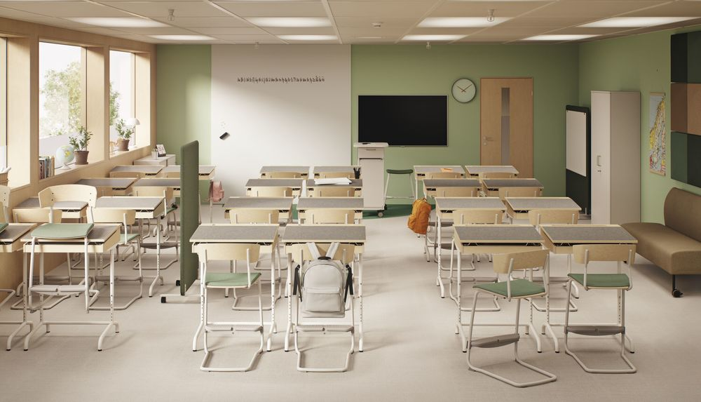 Ürün aynı zamanda malzemelerinin toksik olmadığını ve ürünün okul ortamlarına yönelik Avrupa kalite ve güvenlik gerekliliklerine uygun olduğunu garanti eden Möbelfakta etiketine sahiptir. Junior, iyi akustik özelliklere sahip iki masa üstü tipi sunar: HPL Acoustic masa üstü, sert nesnelerden gelen gürültüyü etkili bir şekilde sönümleyen, yüksek basınçlı laminattan oluşan dayanıklı bir yüzeye sahiptir ve marmoleum, mükemmel ses emici özelliklere sahip sıcak, hoş bir yüzey sağlar.