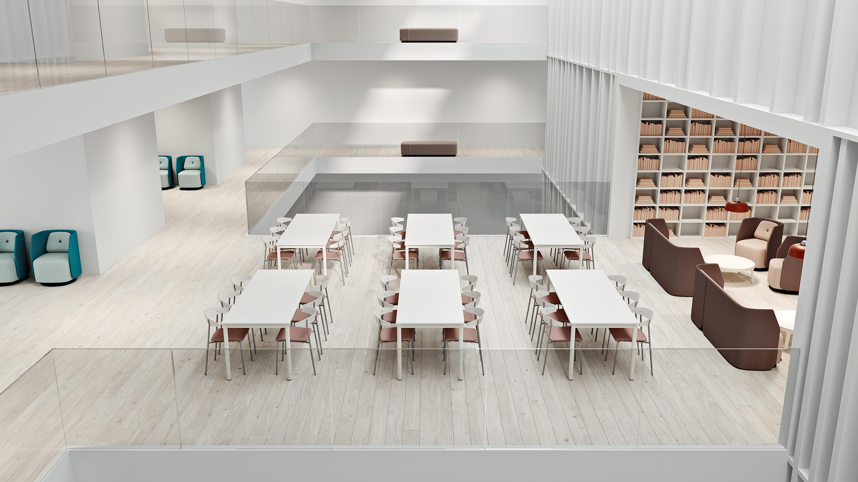 Düzgün çelik konstrüksiyonda kalıplanmış sırt ve çerçeve üzerinde oturma. Sırt, entegre plastik kolçaklı veya kolçaksız olmak üzere iki versiyonda mevcuttur.