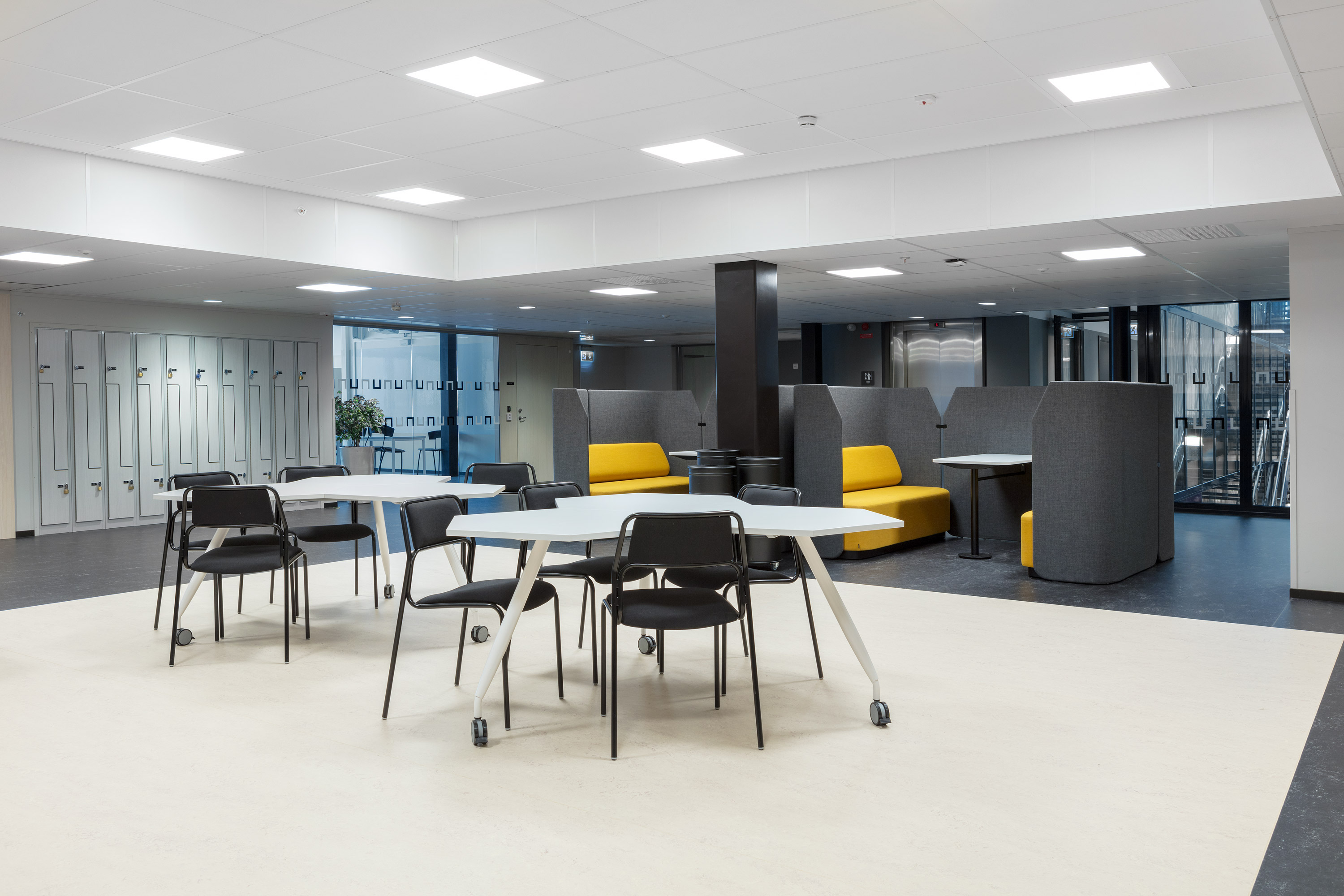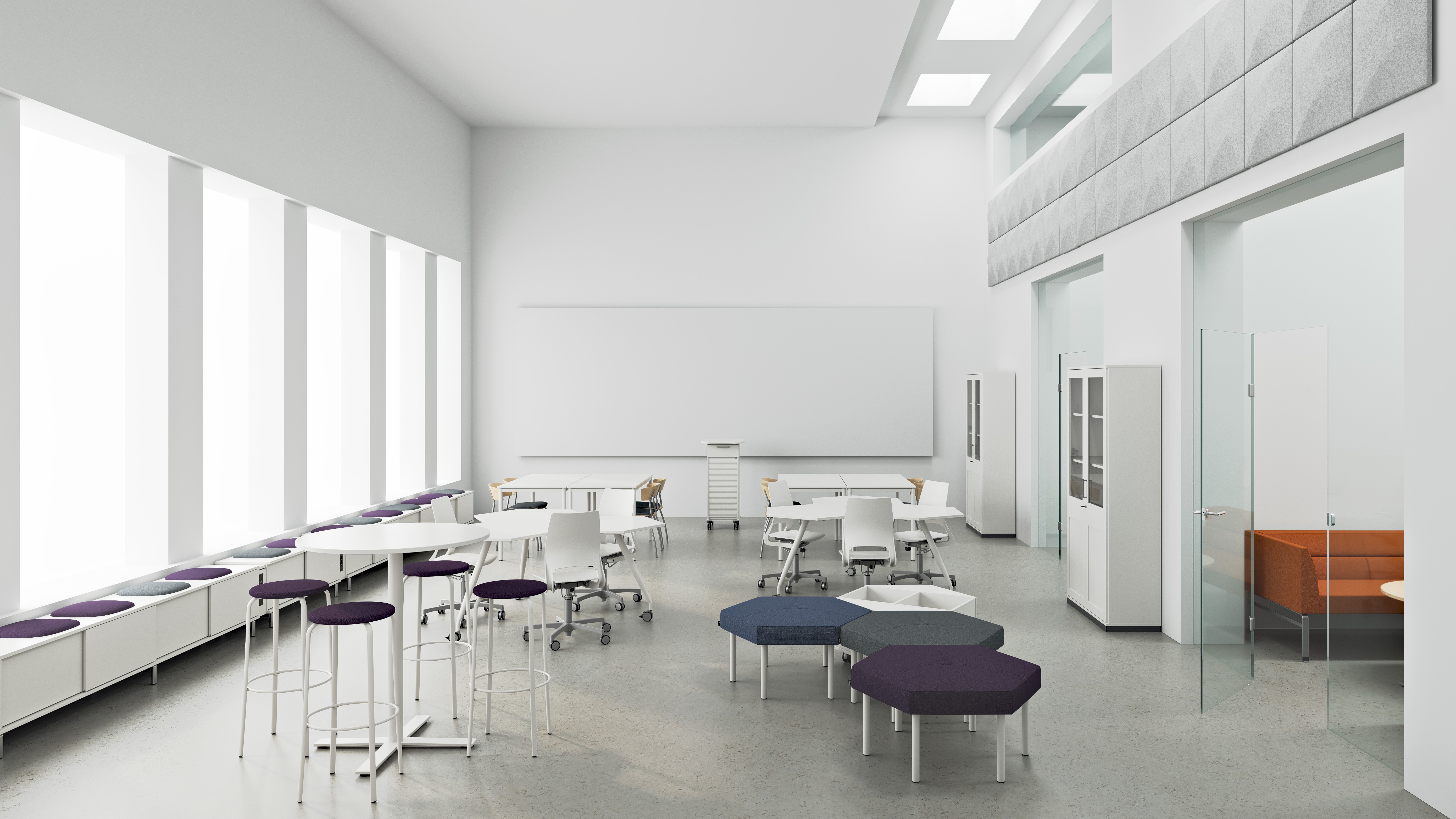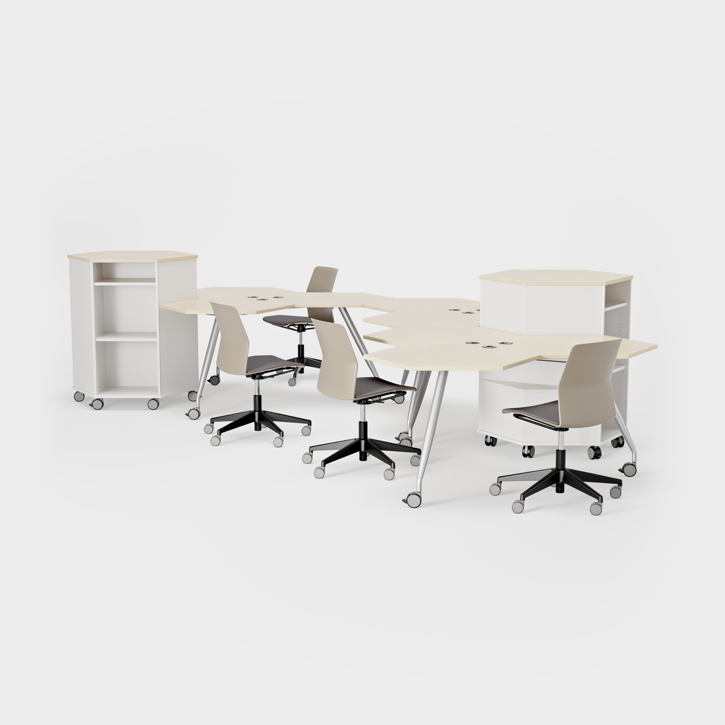Trixagon, değişen ihtiyaçlarınızı karşılamak için hızla yeniden düzenlenebilen bir bilmecedir. Merkezde, bireysel veya grup çalışması, eğitim, okul ve konferans masası olarak kullanılabilen altıgen masalar bulunur. Tablolar, grup tablolarından uzun tablolara kadar çeşitli takımyıldızlarla bağlantılı olabilir. Kolayca yuvarlanabilen ve kilitlenebilir tekerleklerle donatılmıştır, bu da yenilenmeyi kolaylaştırır. Ekipman ve şarj için elektrik prizleri ile donatılabilirler ve proje çalışmaları, grup sunumları ve video konferans için mükemmeldirler.