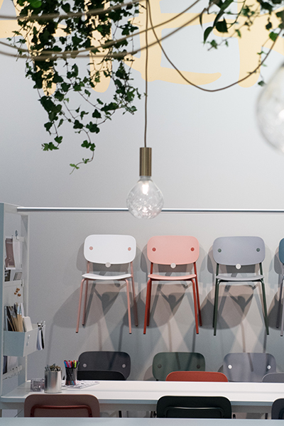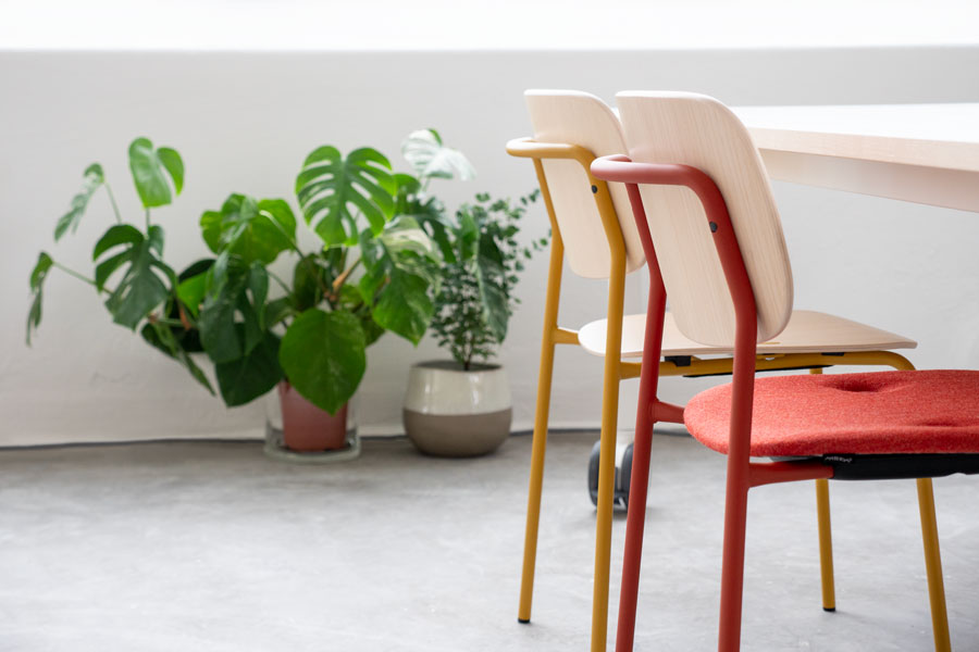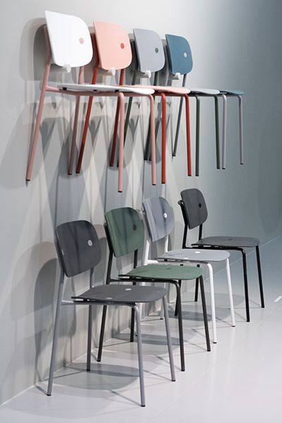 Bu sandalyenin güçlü kimliği, onun ya eğlenceli ve renkli ya da sofistike ve rafine olmasını sağlar. Sağlam çerçevesi ve iyi düşünülmüş detayları ile sandalye zorlu ortamların üstesinden gelebilir. Bacakların açısı sandalyeyi kolayca hareket ettirmek için zarif bir tutamak sağlar.