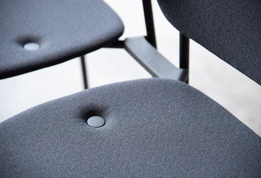 Oturma ve sırt beyaz pigmentli veya siyah boyalı dişbudak alt. şeffaf cilalı meşe veya CbM * içinde enjeksiyon kalıplı polipropilenden. Döküm alüminyum düğmeler, çerçevenin rengiyle uyumludur. Dökme TPE'li kolçak, ona yumuşak bir his verir ve asılırken masa üstlerini korur. Anagram, döşemesiz, döşemeli oturaklı veya tamamen döşemeli olarak mevcuttur. Krom veya CbM * toz kaplamalı çerçeve.