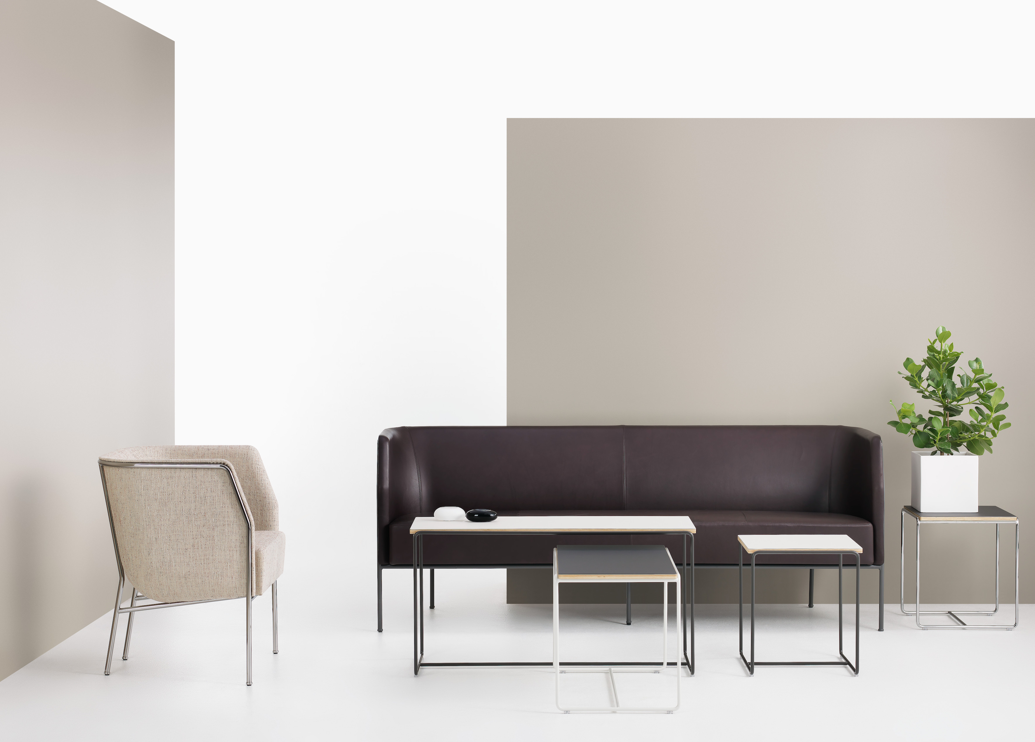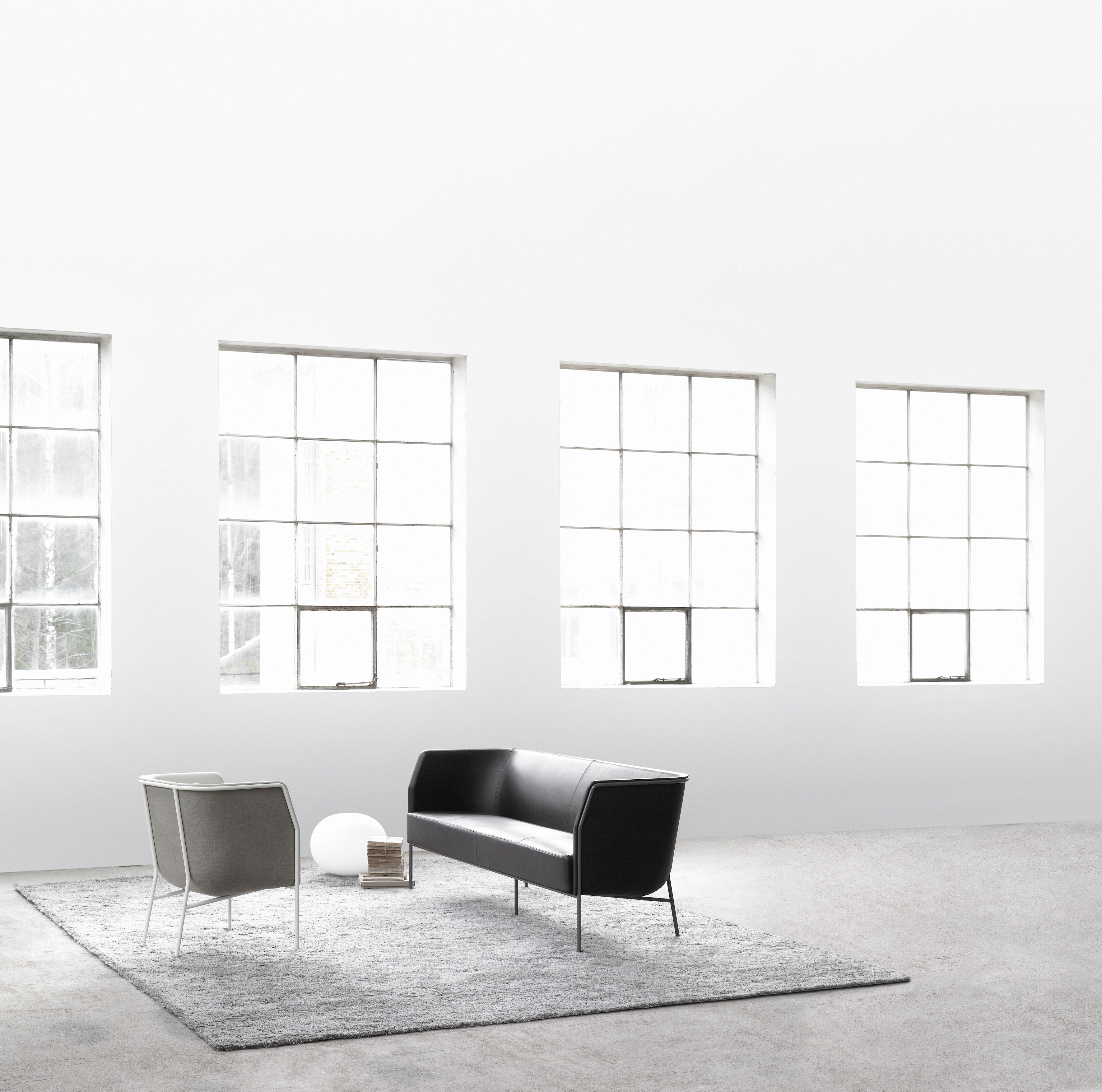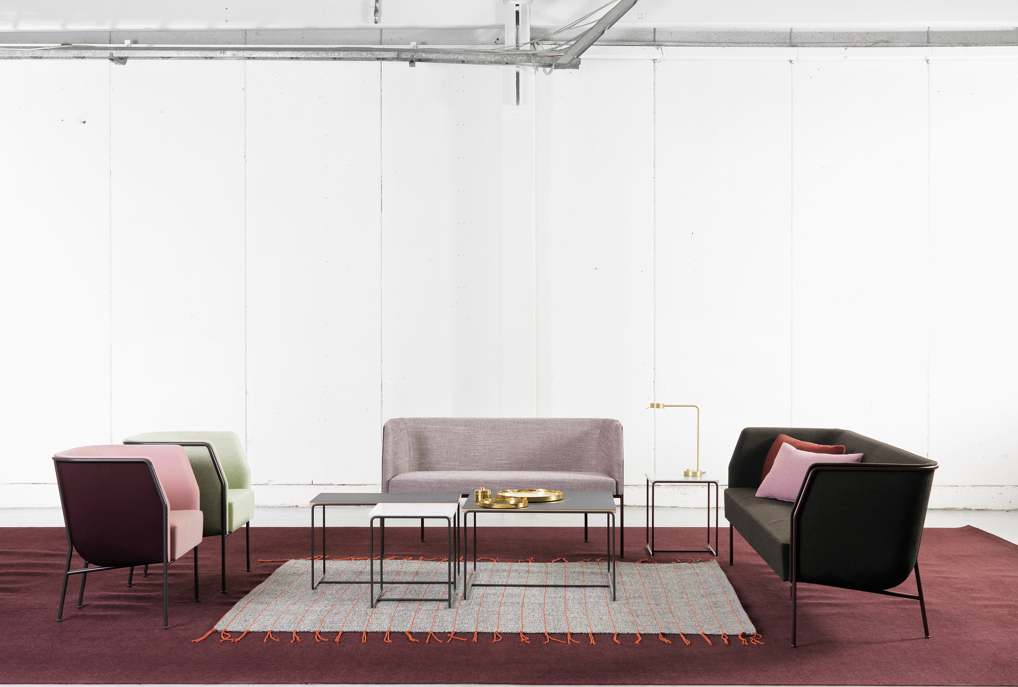 Cajal oturma koleksiyonu, açık çerçevesindeki vurgu ile yapının modernist netliğini ortaya koyuyor. Gunilla Allard, tasarımındaki görünür çelik profilin "bir kalem darbesi gibi" arkayı çevrelediğini açıklıyor.