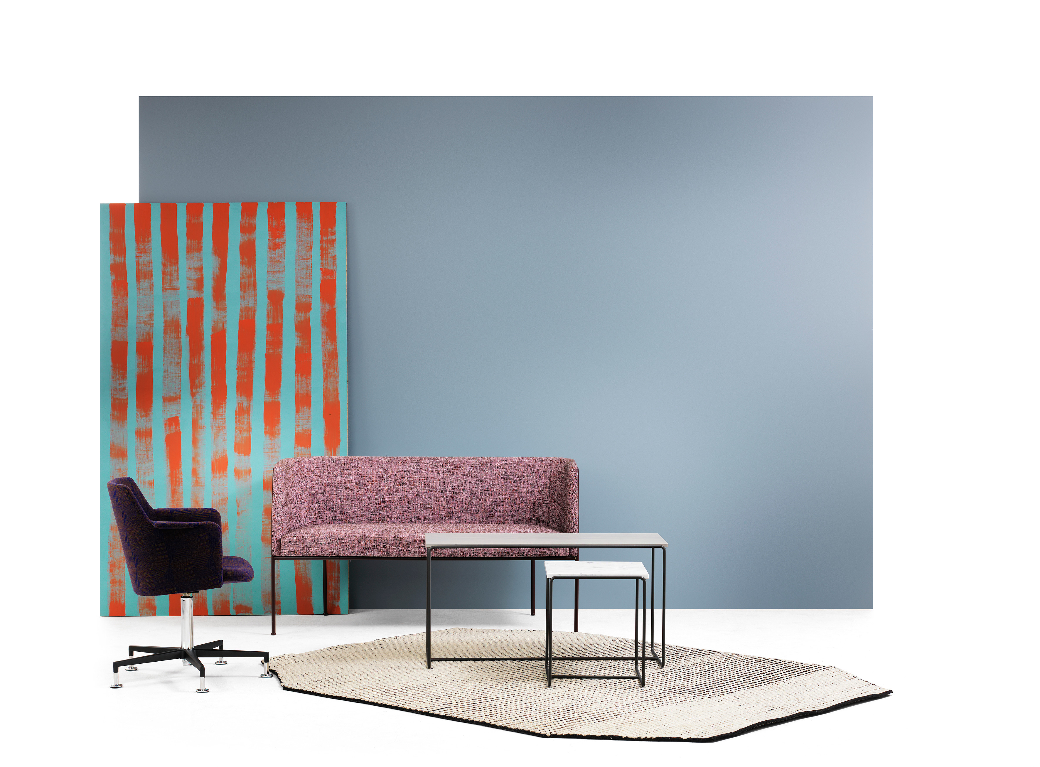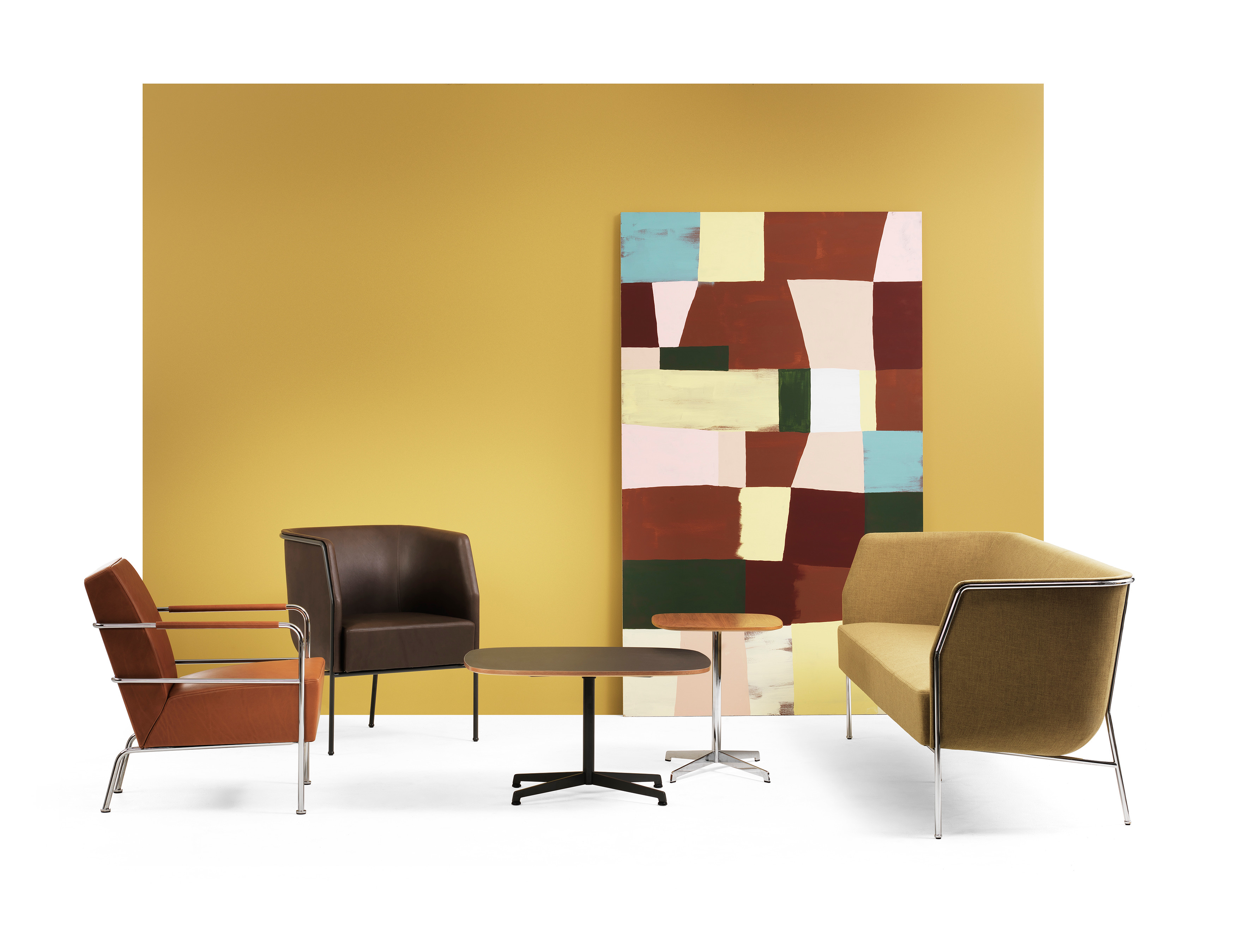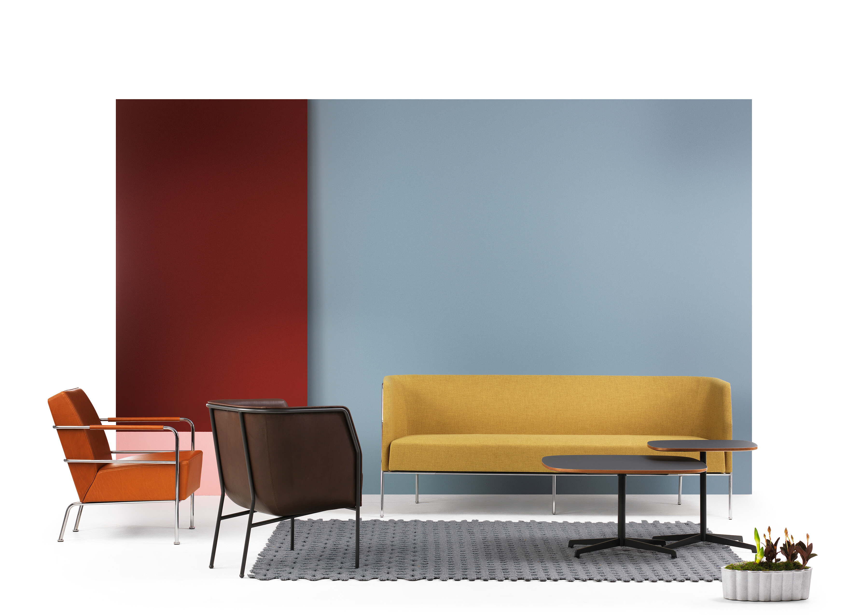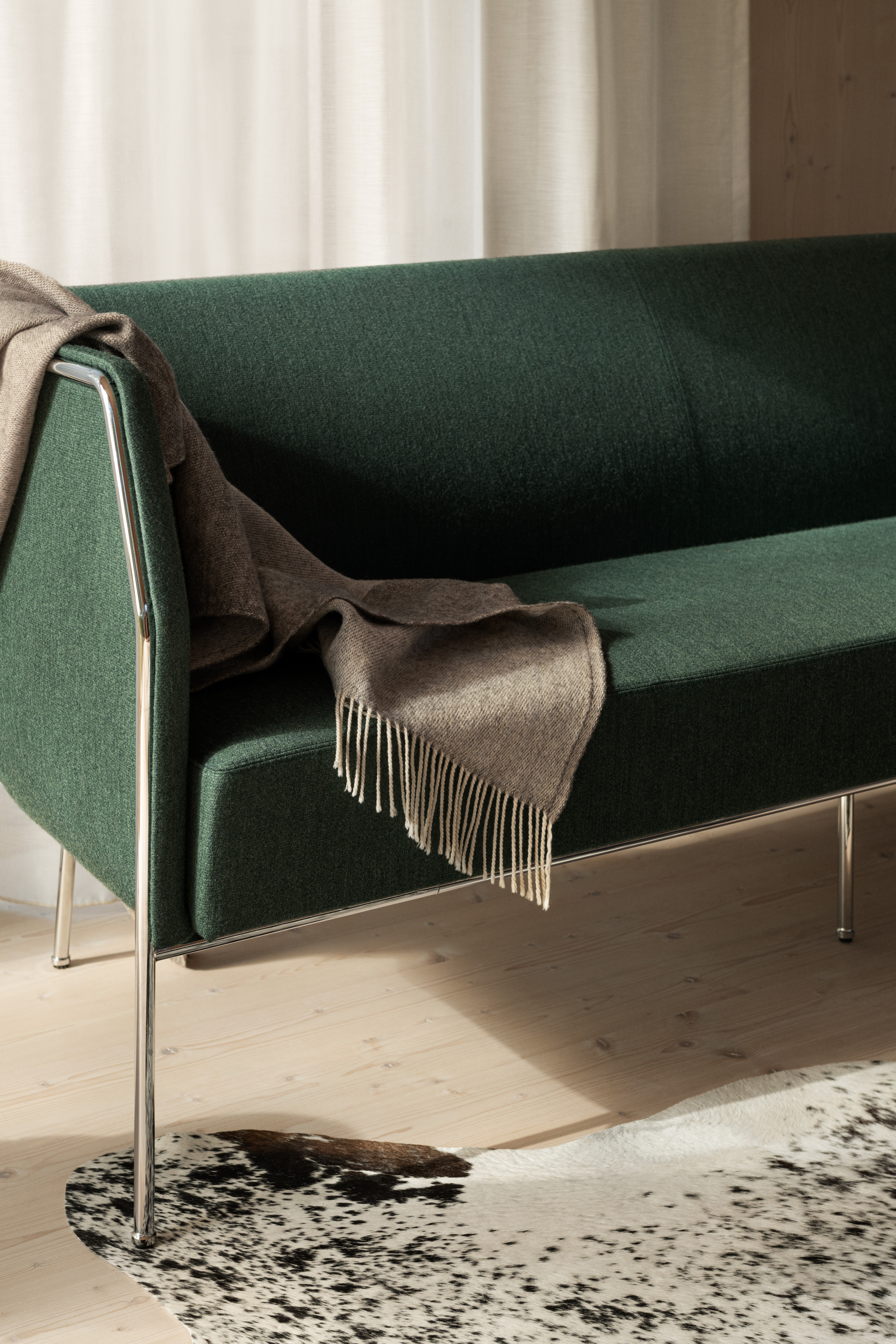 Cajal oturma koleksiyonu, açık çerçevesindeki vurgu ile yapının modernist netliğini ortaya koyuyor. Gunilla Allard, tasarımındaki görünür çelik profilin "bir kalem darbesi gibi" arkayı çevrelediğini açıklıyor.