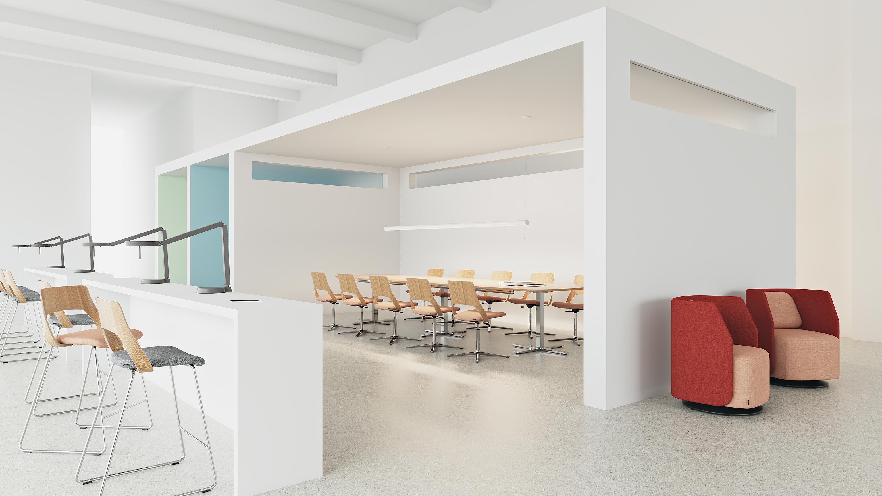 Her tür toplantı için kullanılmak üzere. Daha büyük veya daha küçük gruplar halinde. Bir süre çalışman gerektiğinde. Veya spontane bir konuşma için. Beklemek ya da ara vermek için. Ne istersen ve daha fazlası. Hem esnek hem de işlevsel. Bütün bir sandalye ailesi, temel bir konsept ve tasarım fikrinden yola çıkılarak tasarlanmıştır. Toplam bir konsept. Aynı nazik çizgiler ve tanıma ile. Kaplama ve malzeme seçimine bağlı olarak değişen ifadeler ve özellikler. Embrace, günümüzün çalışma hayatına uygun yeni bir çok yönlü sandalye türüdür. Bu, yeni düşünceler ve fikirler sağlar. Yaratıcılık ve dengeli bir tasarımla.
