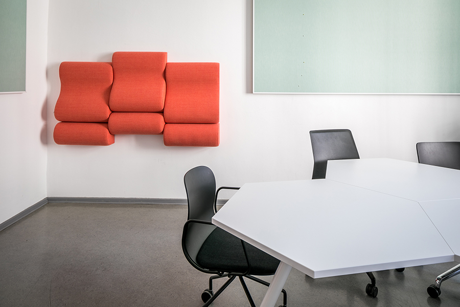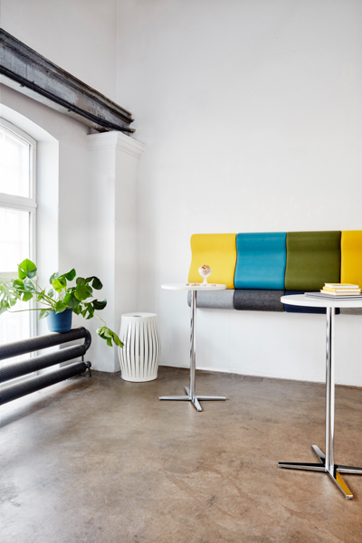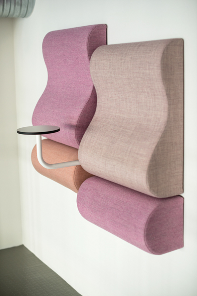 Lean In modülü duvara monte edilmiştir ve vücut için davetkar bir yumuşak destek oluşturken mekan akustiğini de sağlar. Lean In, sınırlı alana sahip alanlarda veya yeni etkileşim yolları yaratmak istediğiniz odalarda idealdir. İsteğe bağlı ekstra olarak duvara monte bir masa mevcuttur. Masa tablası dayanıklı kompakt laminattan yapılmıştır ve iki versiyonu mevcuttur; siyah çekirdekli siyah veya beyaz. Kol, krom alt olarak sipariş edilebilir. beyaz veya siyah toz boya.