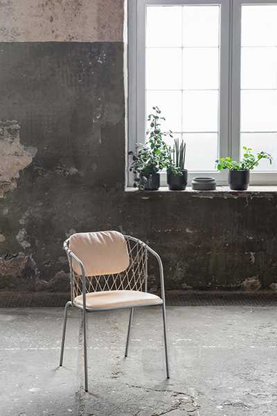 Yarn, az sayıda bileşeni ile hafif ve neredeyse havada uçuşan bir görünüm kazandırıyor. Sürdürülebilirlik ve çevresel etki, malzeme tasarımı ve seçiminin merkezinde yer almıştır. Yarn'ın üretiminde sırtın güzel deseni kenevir ipleri kullanılarak elde örülmüştür. Oturma ve sırt minderleri, at kılı ve doğal lateks karışımı olan hairlok ve iğneli keçe ile doldurulur. Ekstra rahatlık sağlamak için sırt yastığının bir parçası olarak yün de dahildir.